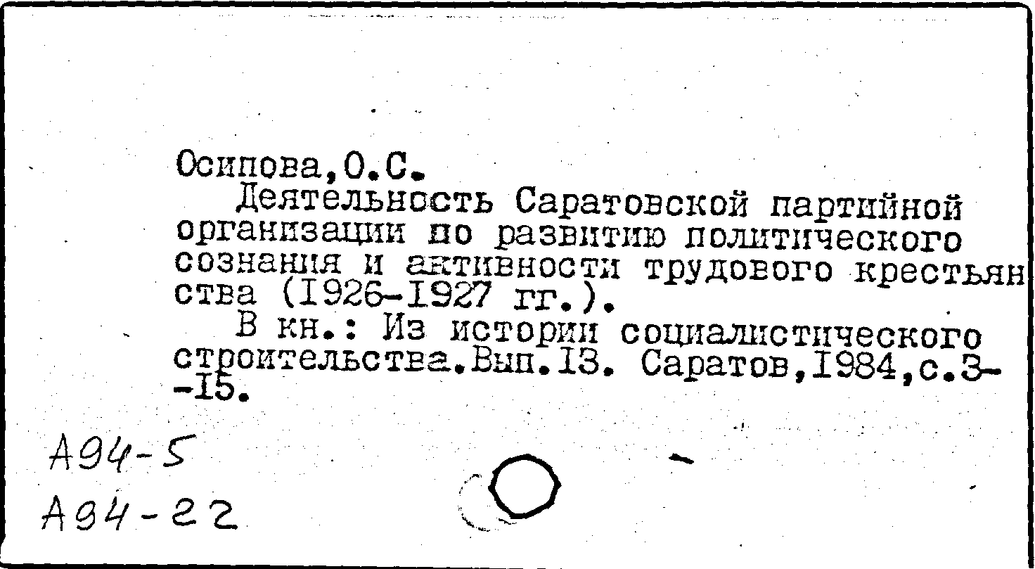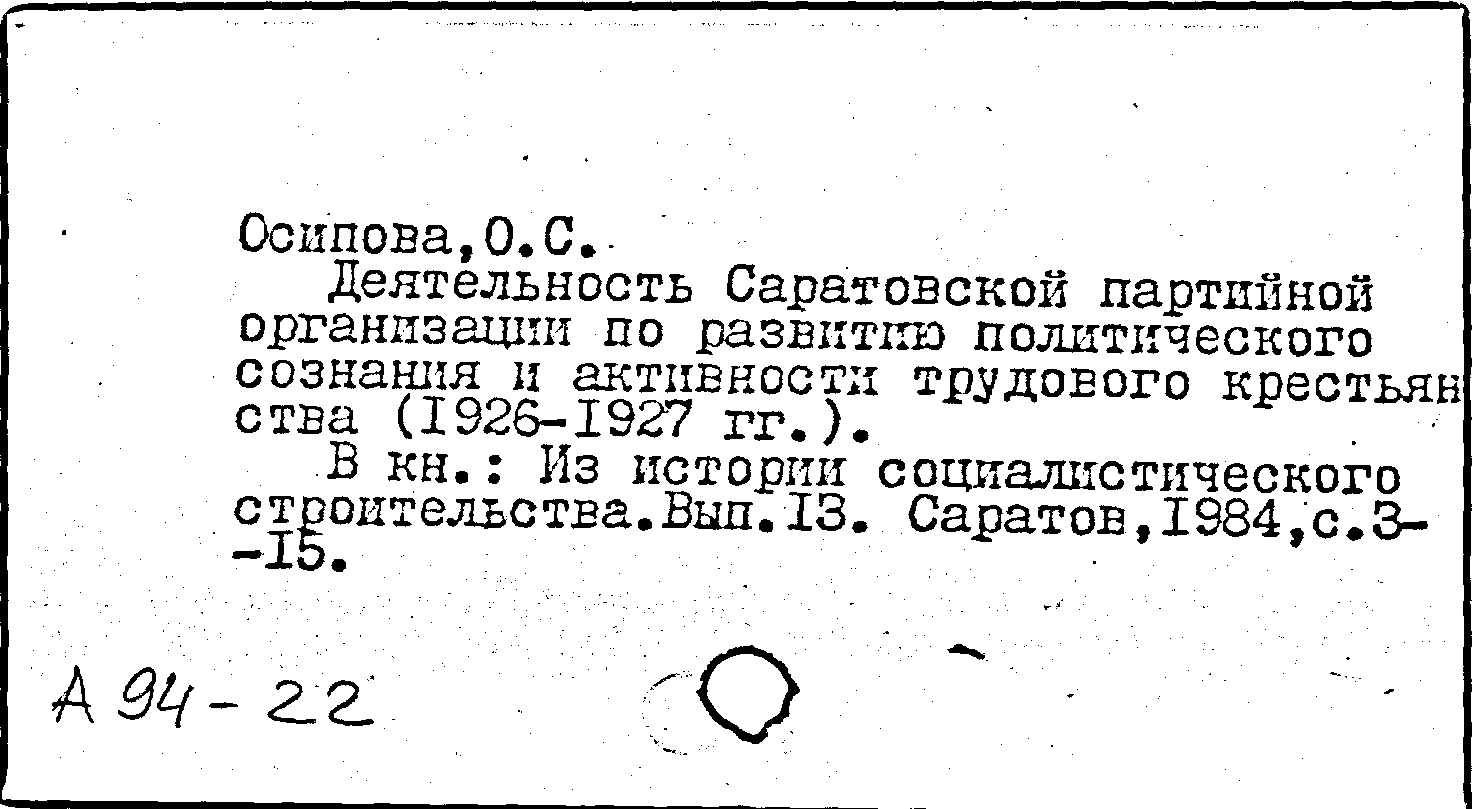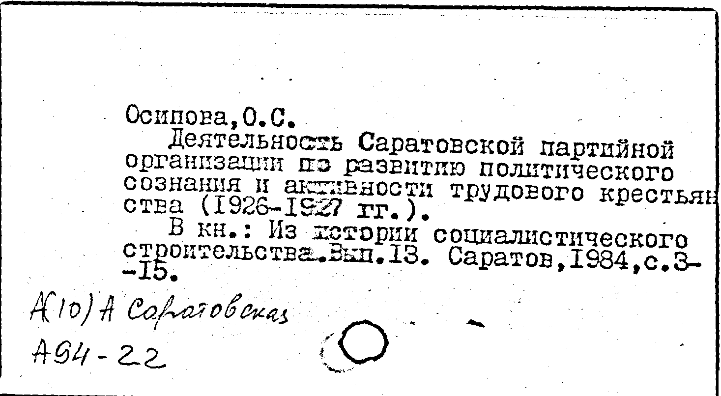 Деятельность Саратовской партийной организации по развитию политического сознания и активности трудового крестьянства (1926-1927 гг.)