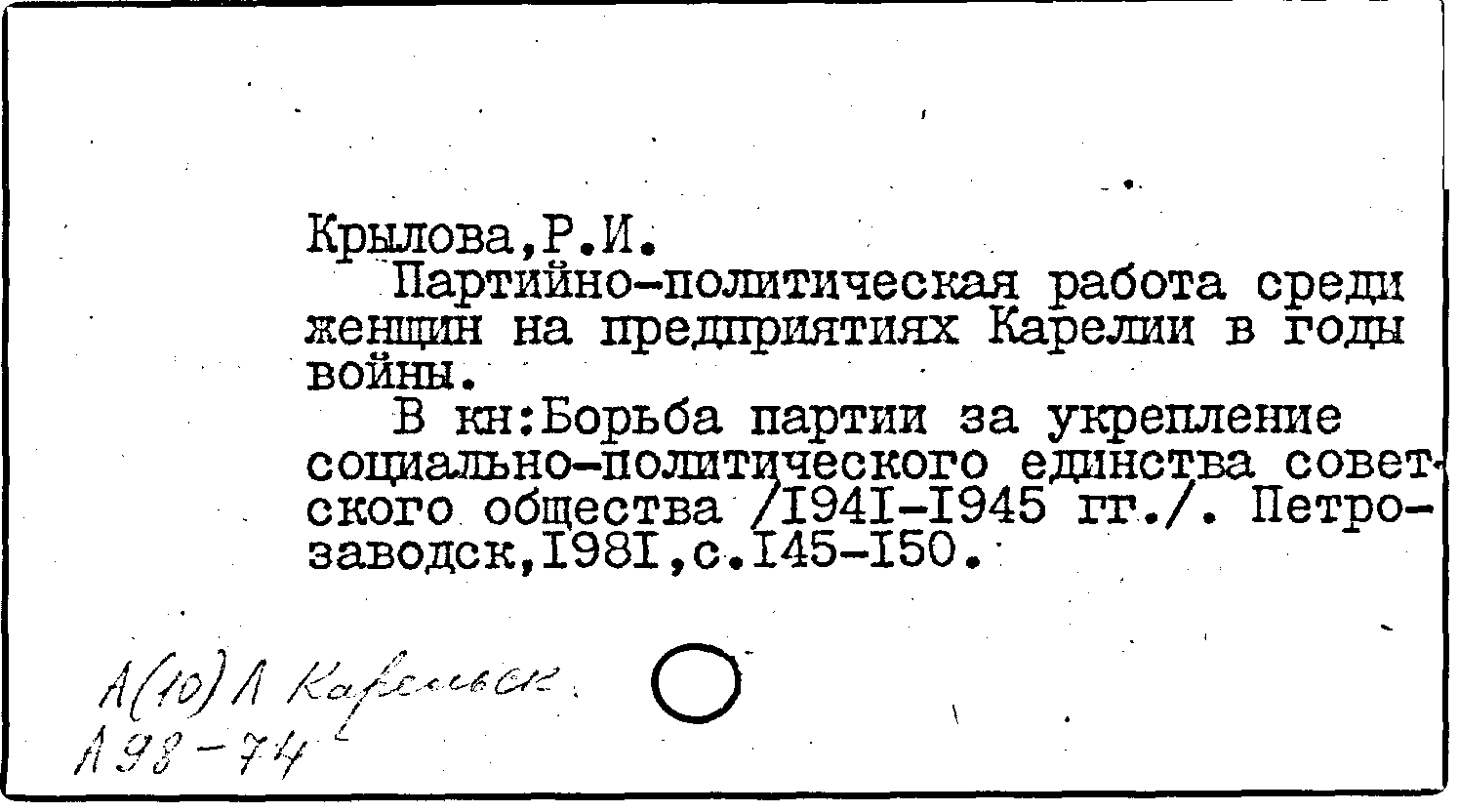Книга (аналит. описание): Партийно-политическая работа среди женщин на промышленных предприятиях Карелии в годы войны