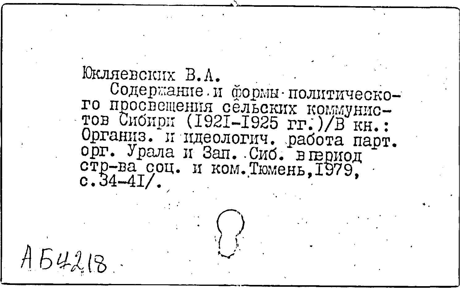 Содержание и формы политического просвещения сельских коммунистов Сибири (1921-1925 гг.)