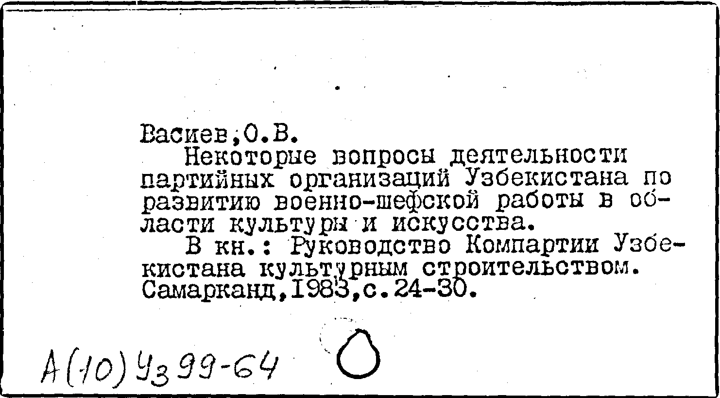 Книга (аналит. описание): Некоторые вопросы деятельности партийных организаций Узбекистана по развитию военно-шефской работы в области культуры и искусства