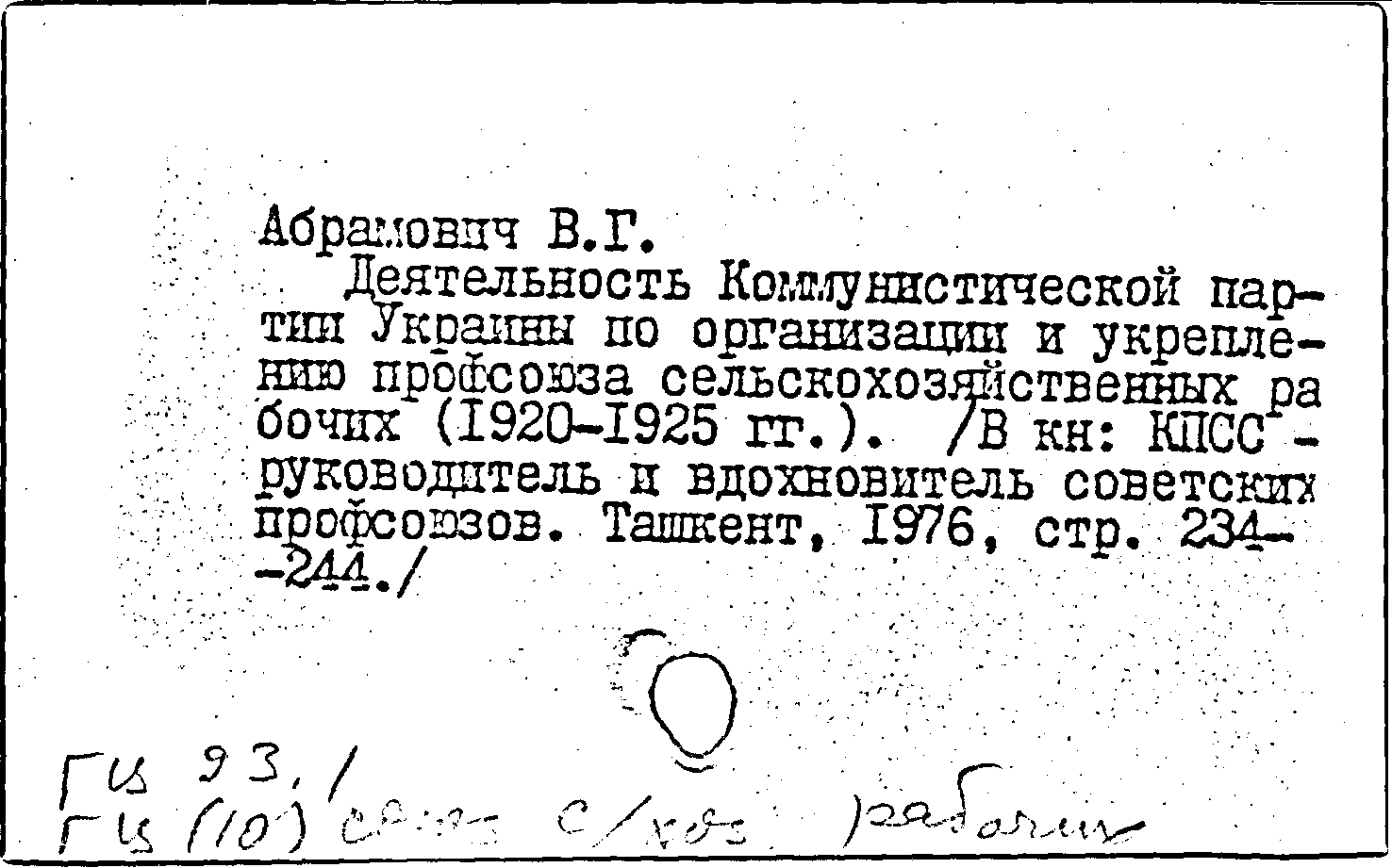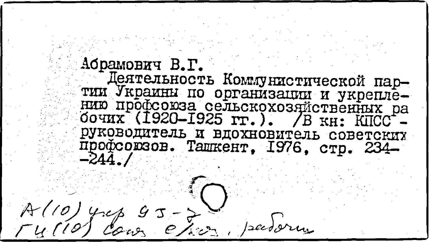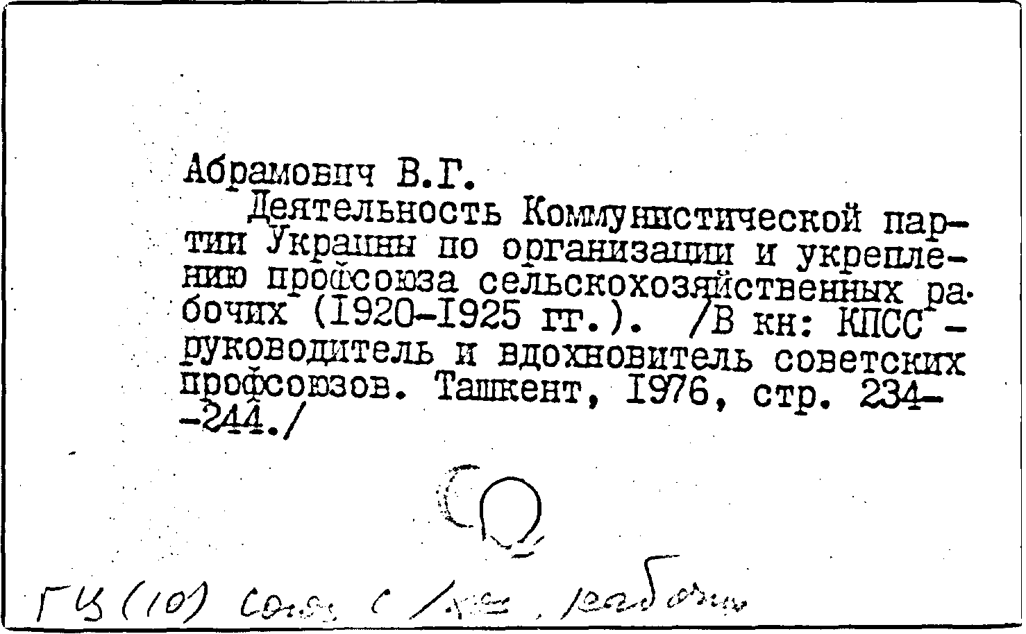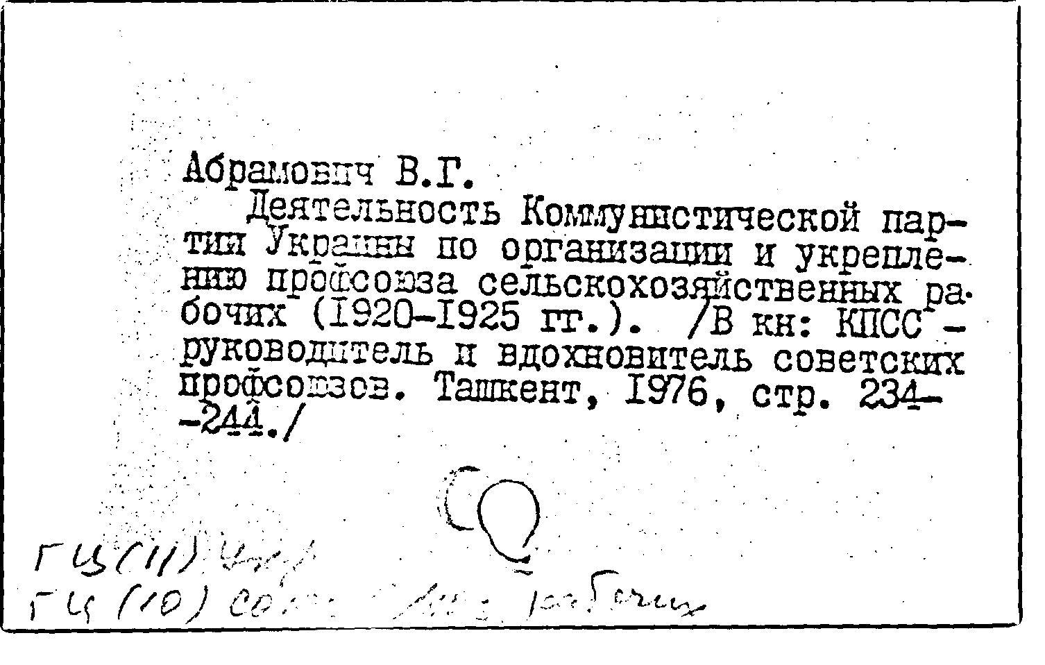 Деятельность Коммунистической партии Украины по организации и укреплению профсоюза сельскохозяйственных рабочих (1920-1925 гг.)