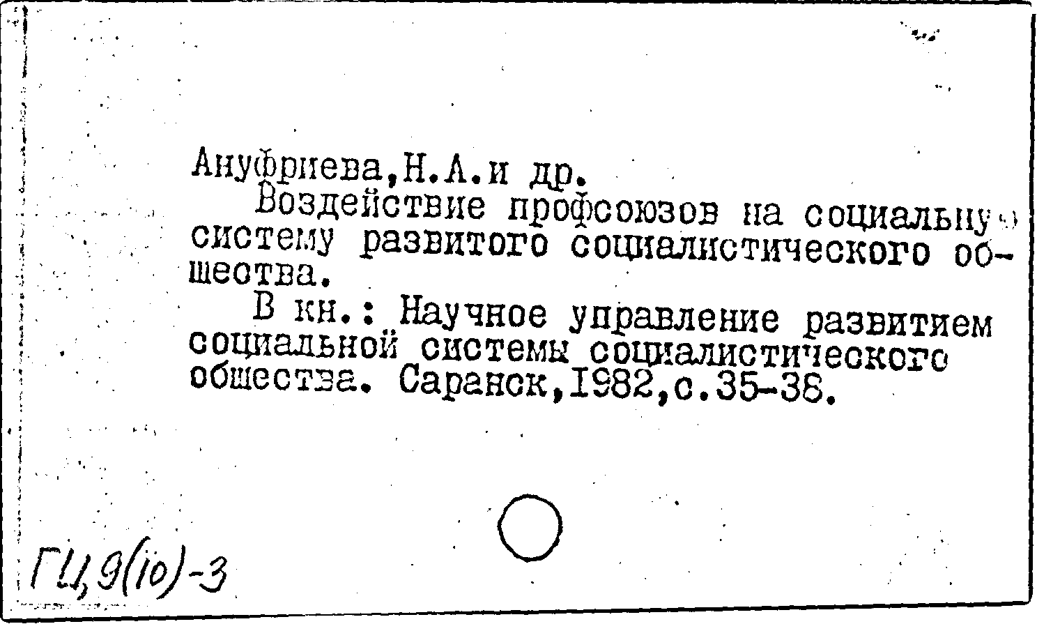 Книга (аналит. описание): Воздействие профсоюзов на социальную систему развитого социалистического общества