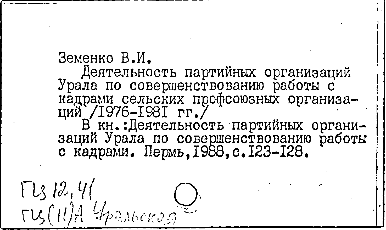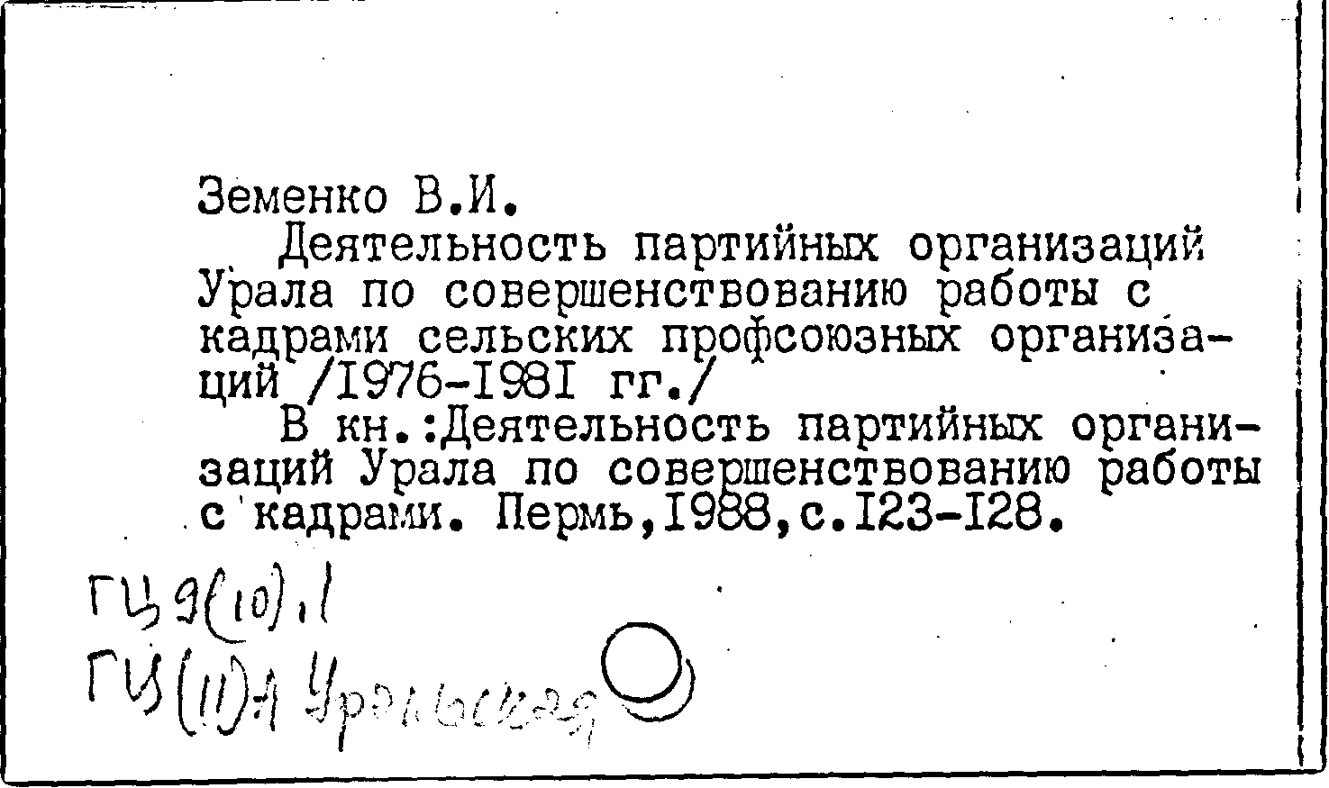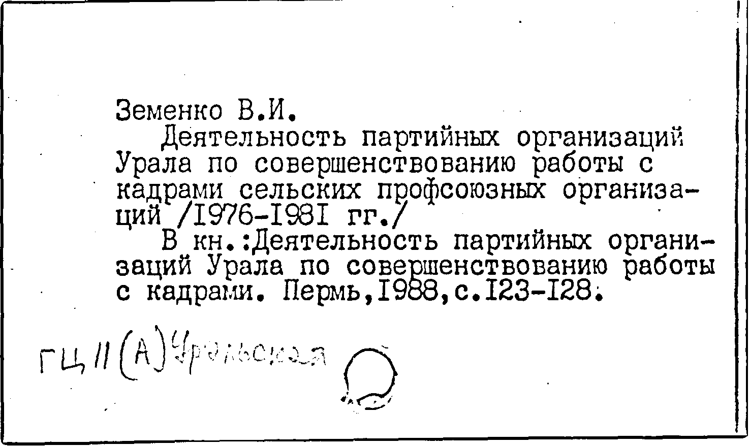 Книга (аналит. описание): Деятельность партийных организаций Урала по совершенствованию работы с кадрами сельских профсоюзных организаций (1976-1981 гг.)