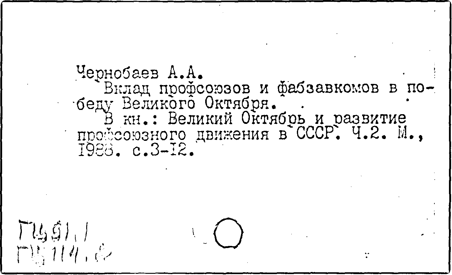 Книга (аналит. описание): Вклад профсоюзов и фабзавкомов в победу Великого Октября