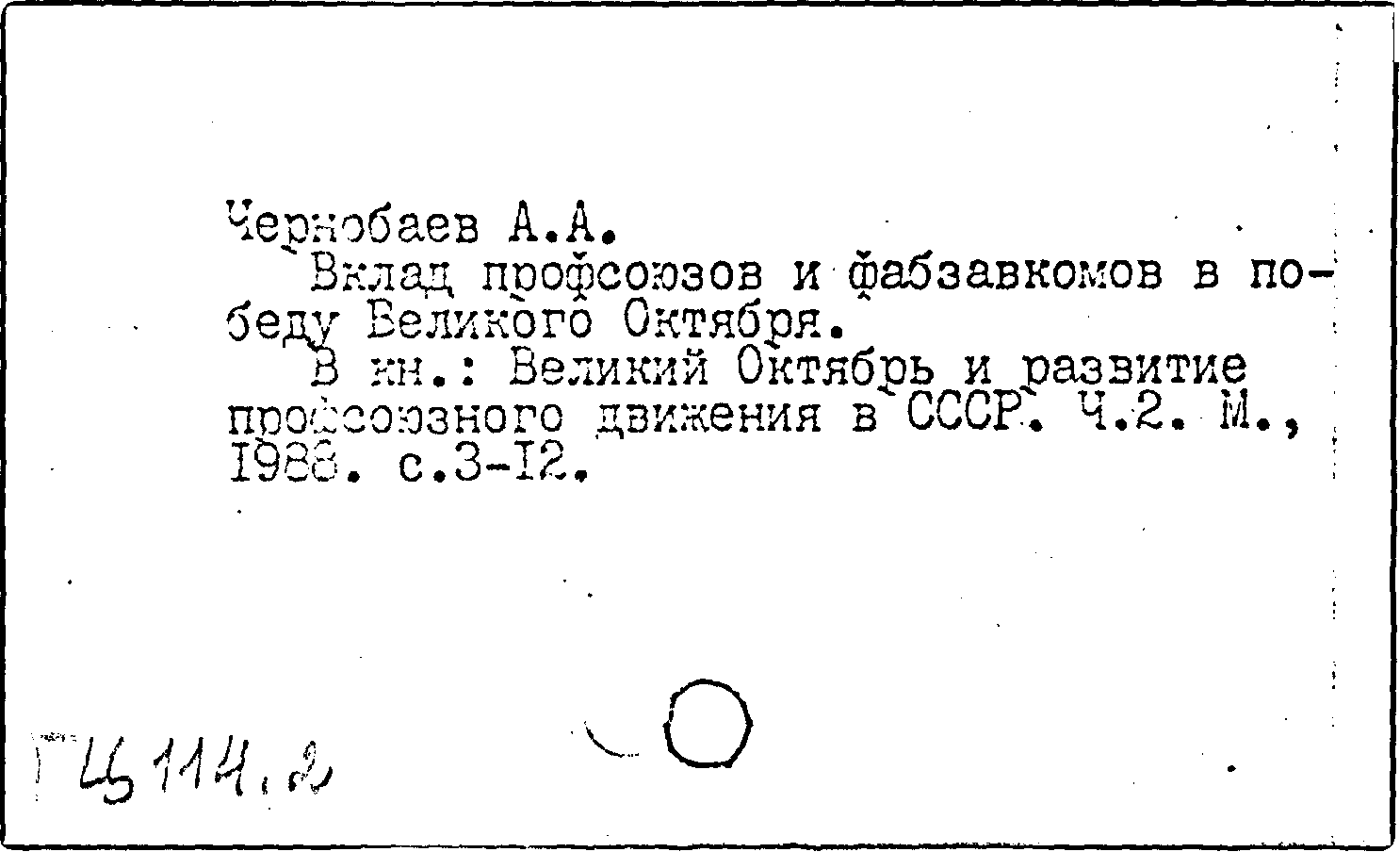 Вклад профсоюзов и фабзавкомов в победу Великого Октября