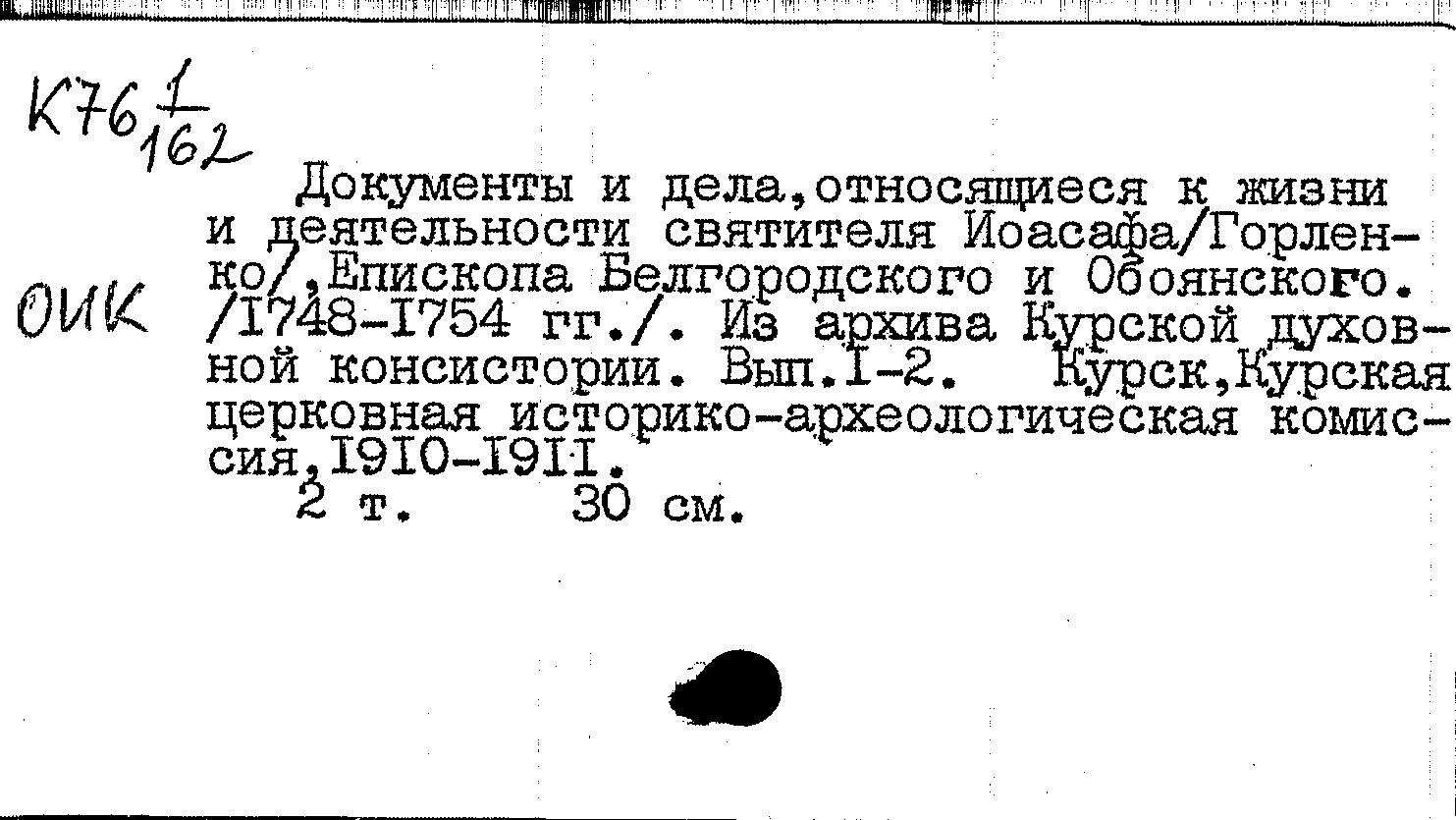 Документы и дела, относящиеся к жизни и деятельности святителя Иоасафа (Горленко), Епископа Белгородского и Обоянского. (1748-1754 гг.)