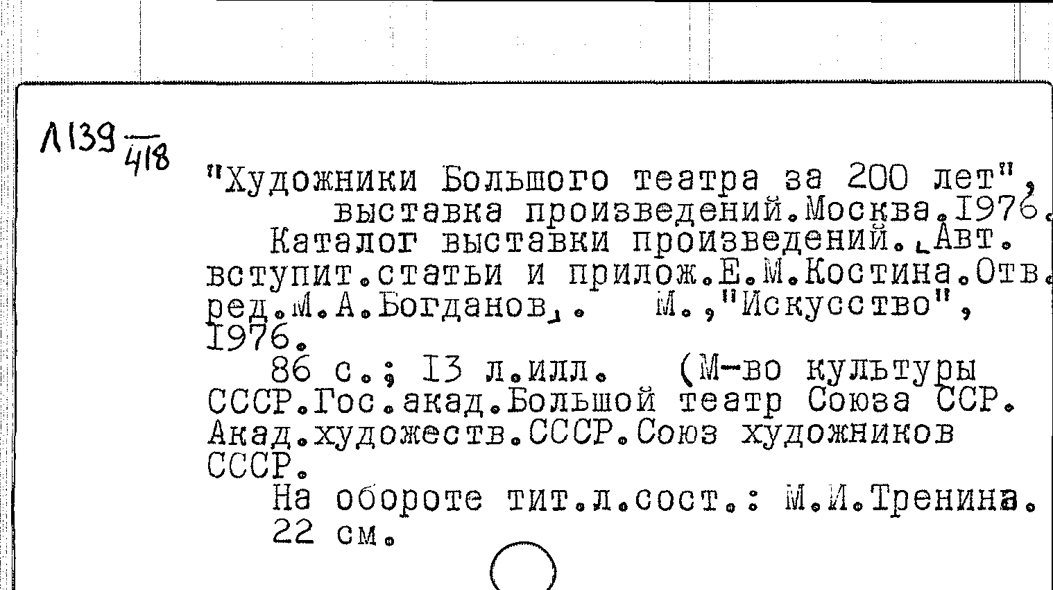 Фонд: КХ, Шифр: Л 139 /418, Инв.№: 1522193
