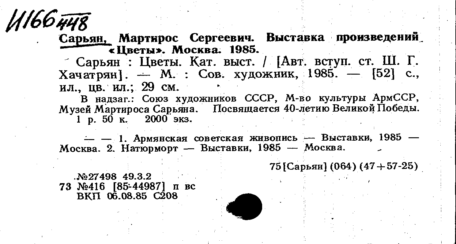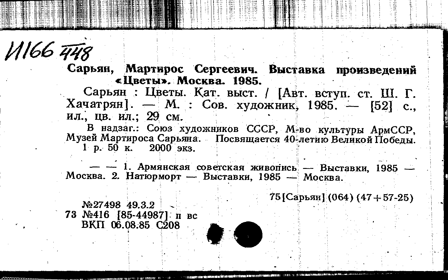 Сарьян, Мартирос Сергеевич. Выставка произведений "Цветы" (1985; Москва)