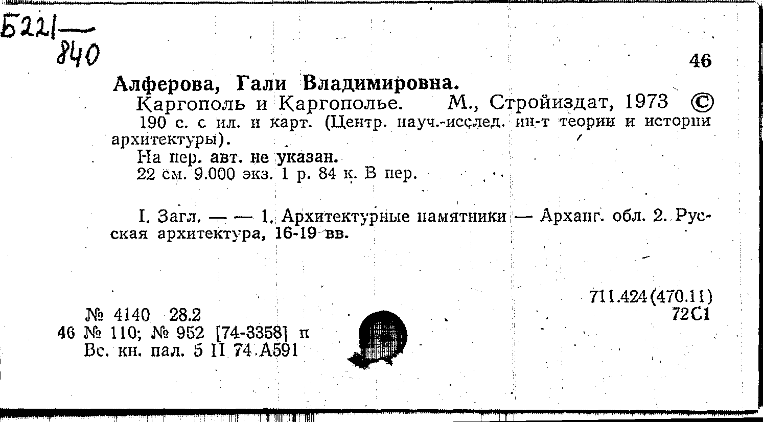 Г.В. Алферова; Центр. нии теории и истории архитектуры