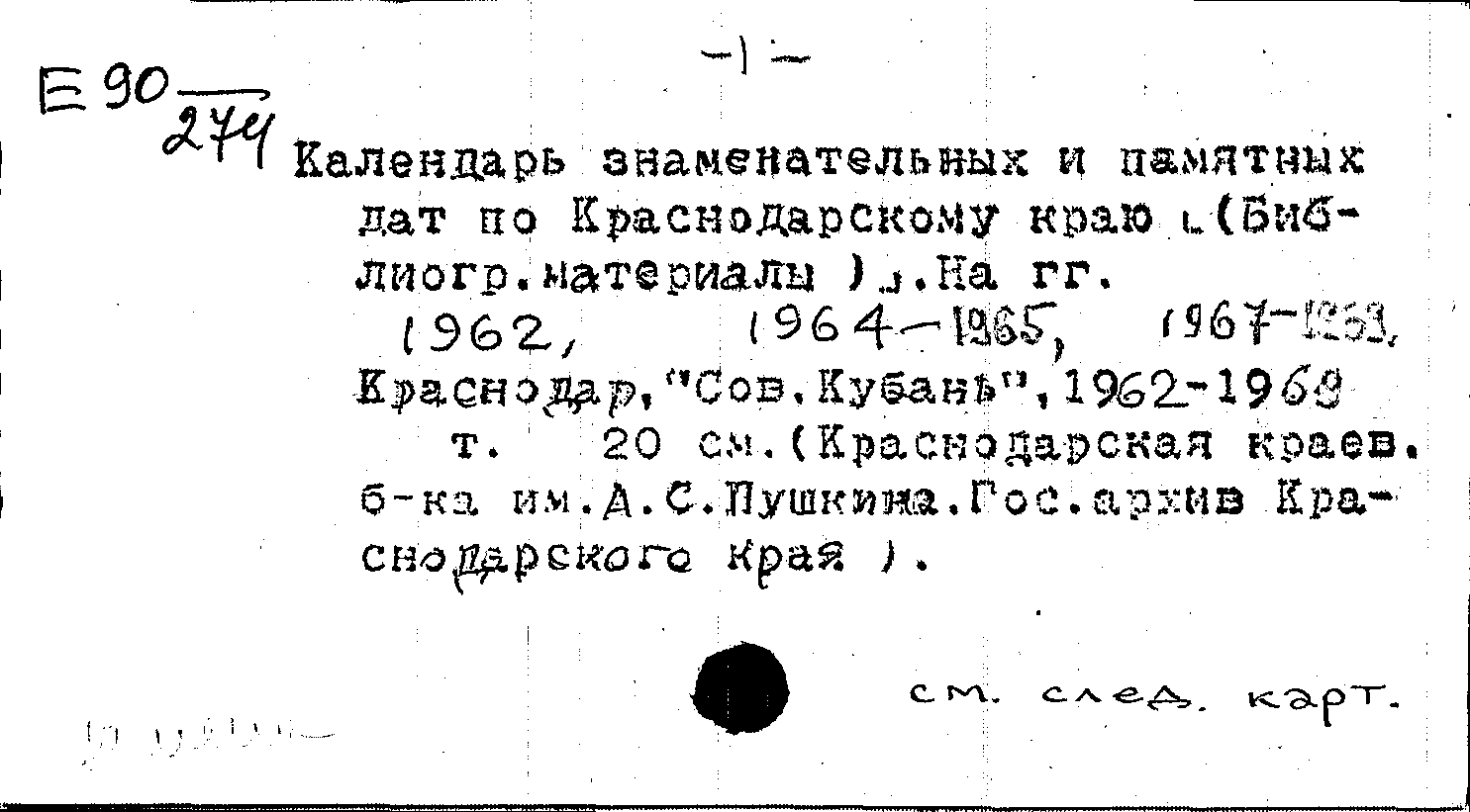 Календарь знаменательных и памятных дат по Краснодарскому краю. На 1965 год
