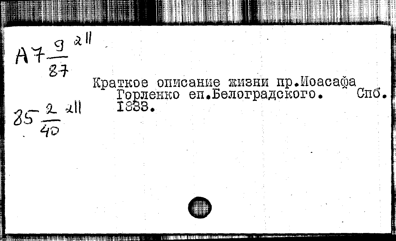 Краткое описание жизни пресвятого Иоасафа Горленко епископа Белоградского