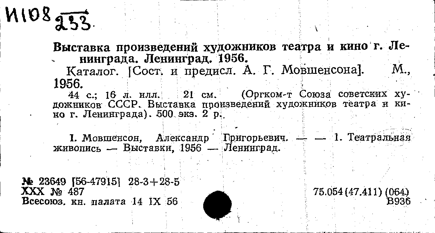 Выставки произведений художников театра и кино г. Ленинграда (1956; Ленинград)