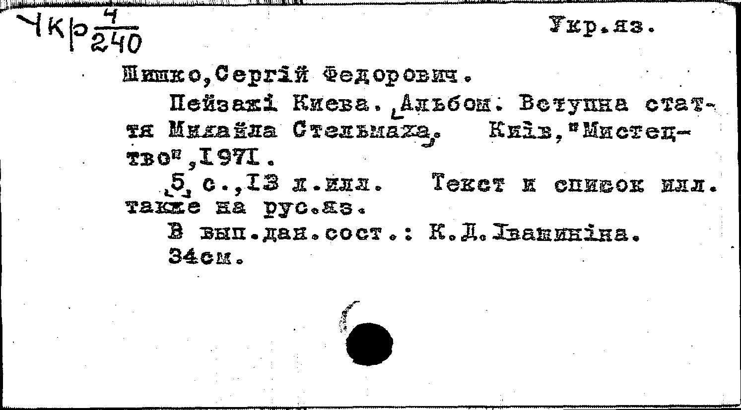 Фонд: КХ, Шифр: Укр 4/240, Инв.№: 1673651