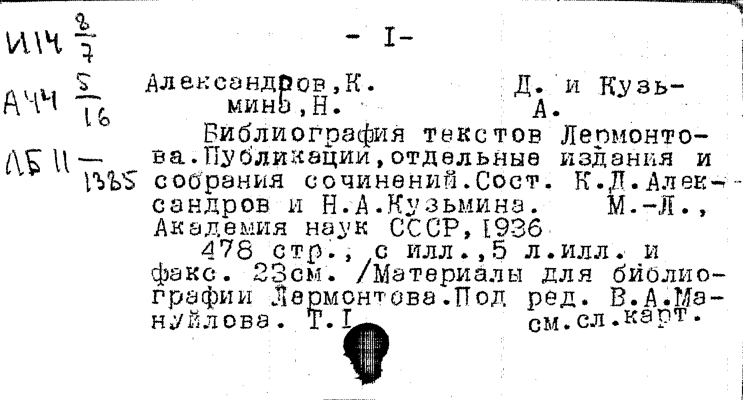 Фонд: СБ, Шифр: У 6 Лермонтов М.Ю./Б 59, Инв.№: 10102170