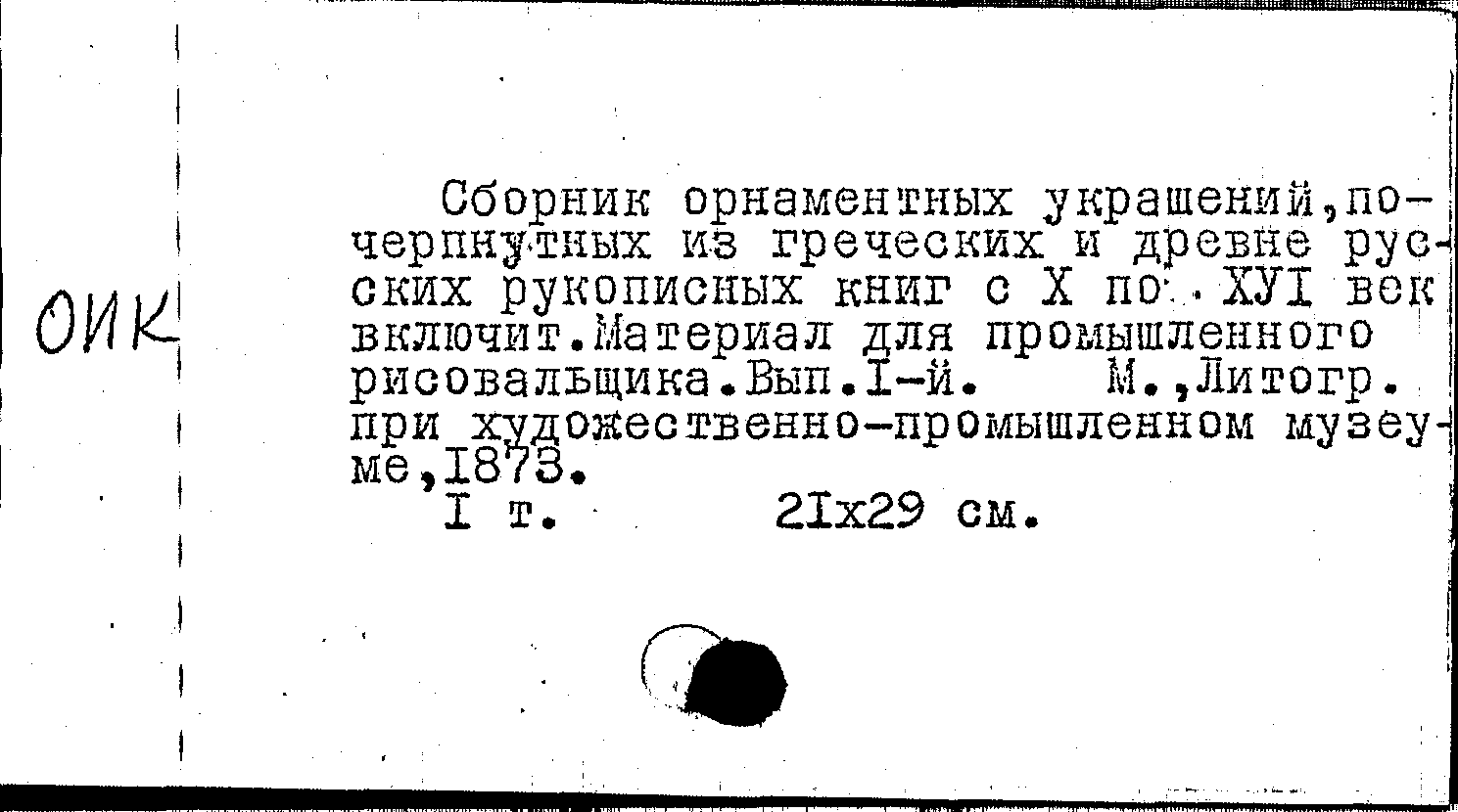 Сборник орнаментных украшений, почерпнутых из греческих и древнерусских рукописных книг с X по XVI век включит. Вып. 1
