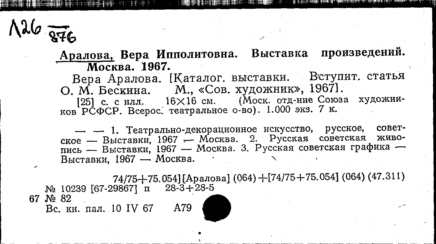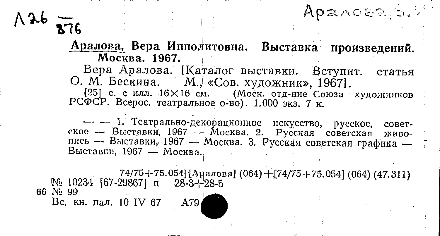 Аралова, Вера Ипполитовна. Выставка произведений (1967; Москва)