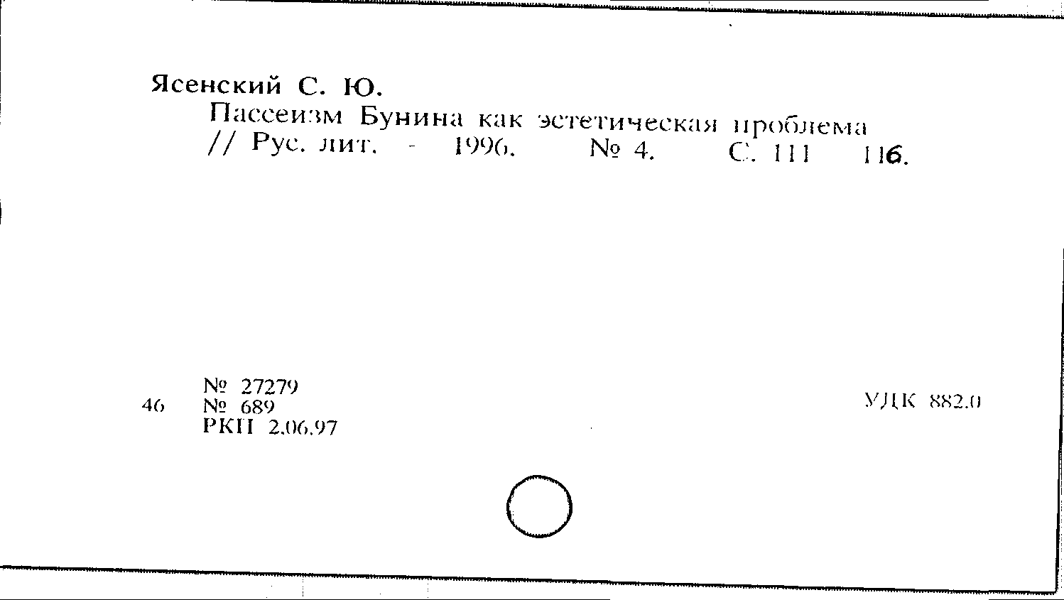 Книга (аналит. описание): Пассеизм Бунина как эстетическая проблема