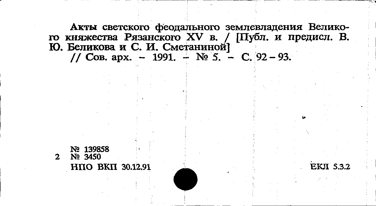 Акты светского феодального землевладения Великого княжества Рязанского XV в.