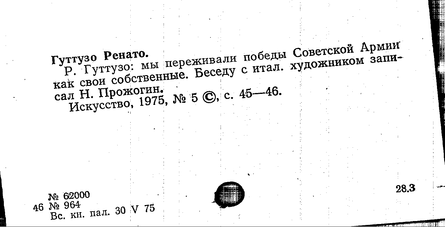 Книга (аналит. описание): Р. Гуттузо: мы переживали победы Советской Армии как свои собственные