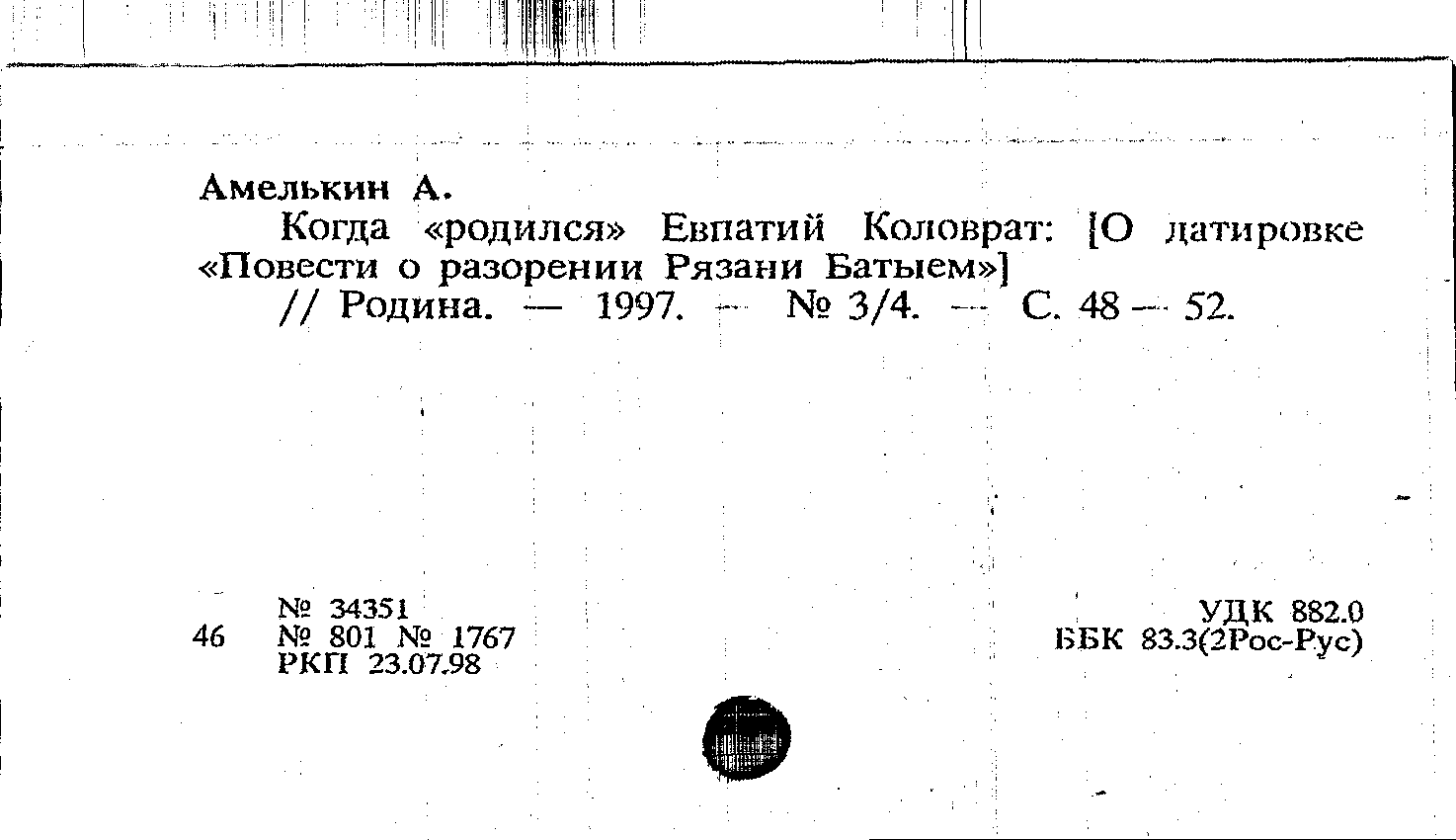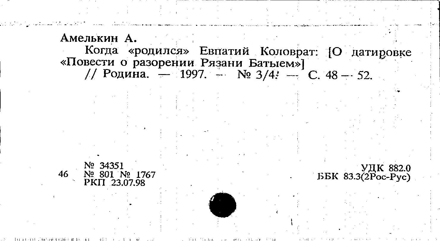 Книга (аналит. описание): Когда "родился" Евпатий Коловрат