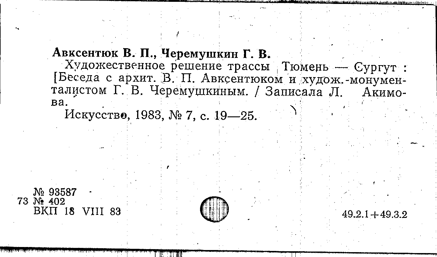 Книга (аналит. описание): Художественное решение трассы Тюмень - Сургут
