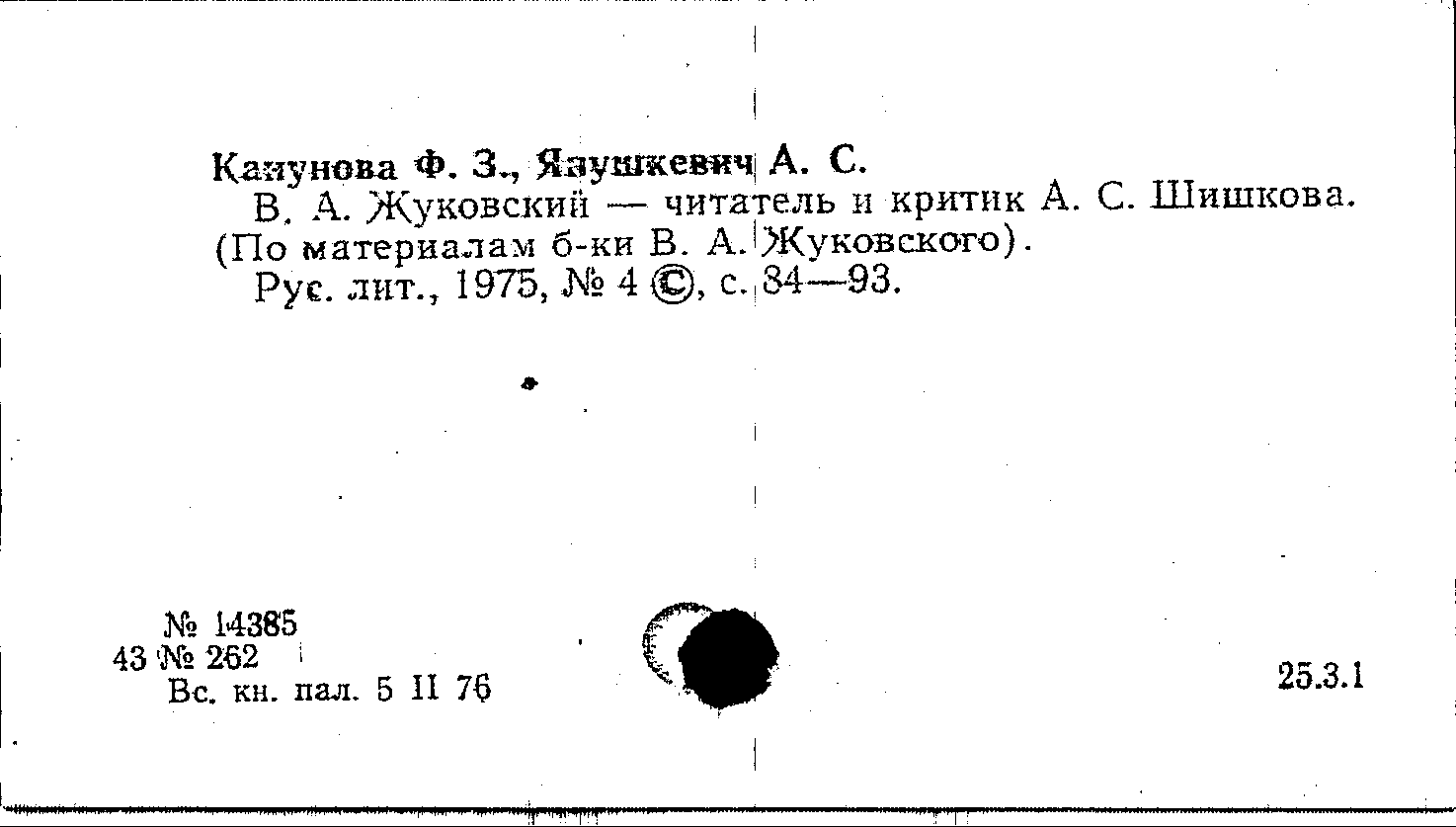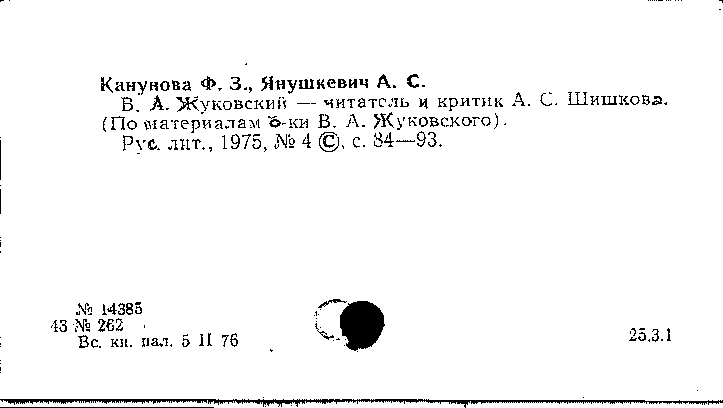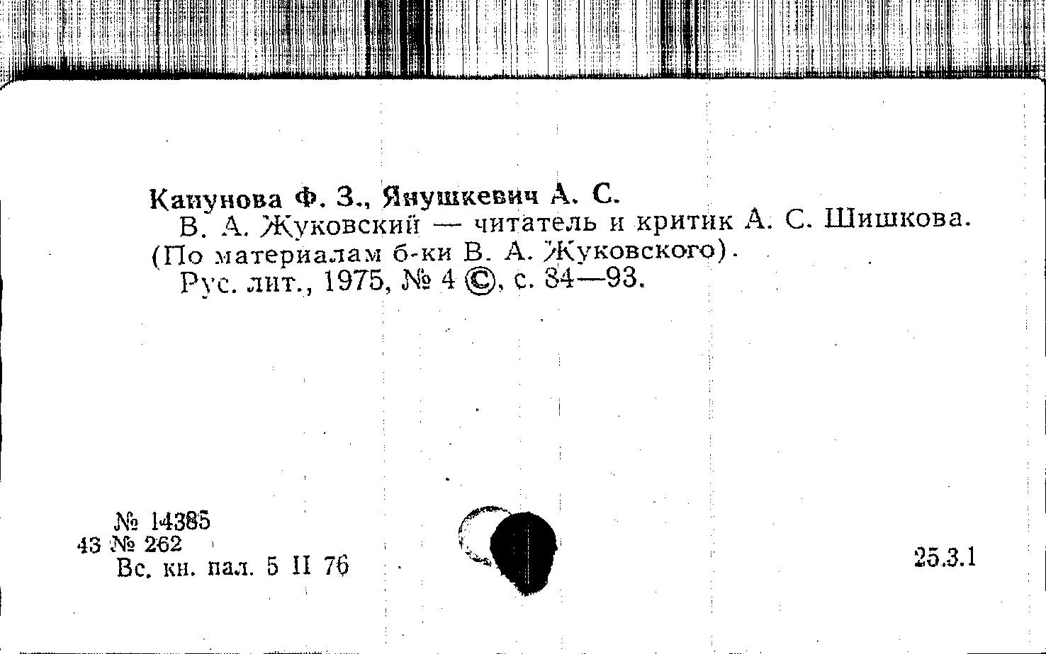 Книга (аналит. описание): В. А. Жуковский - читатель и критик А. С. Шишкова