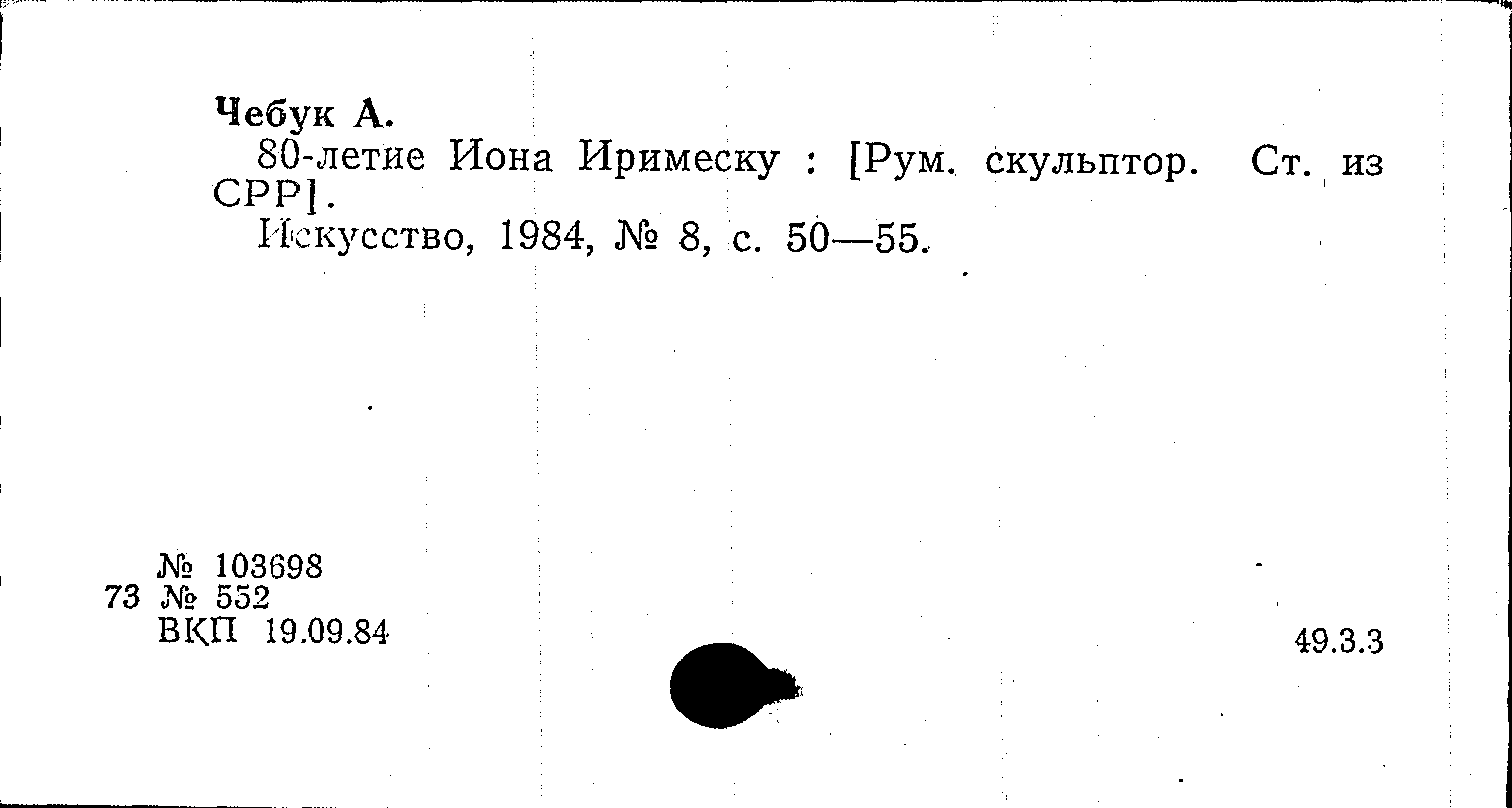 Книга (аналит. описание): 80-летие Иона Иримеску