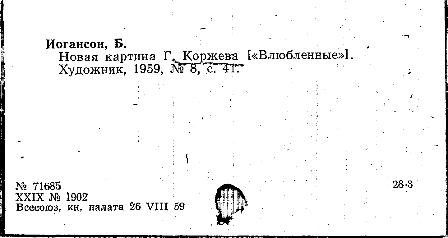 Книга (аналит. описание): Новая картина Г. Коржева ["Влюбленные"]