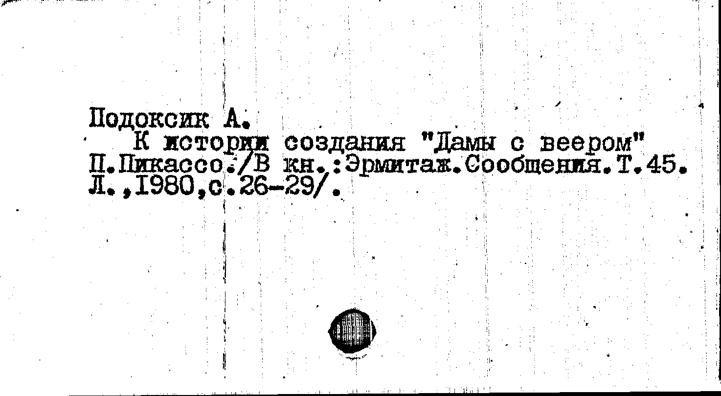 Книга (аналит. описание): К истории создания "Дамы с веером" П. Пикассо