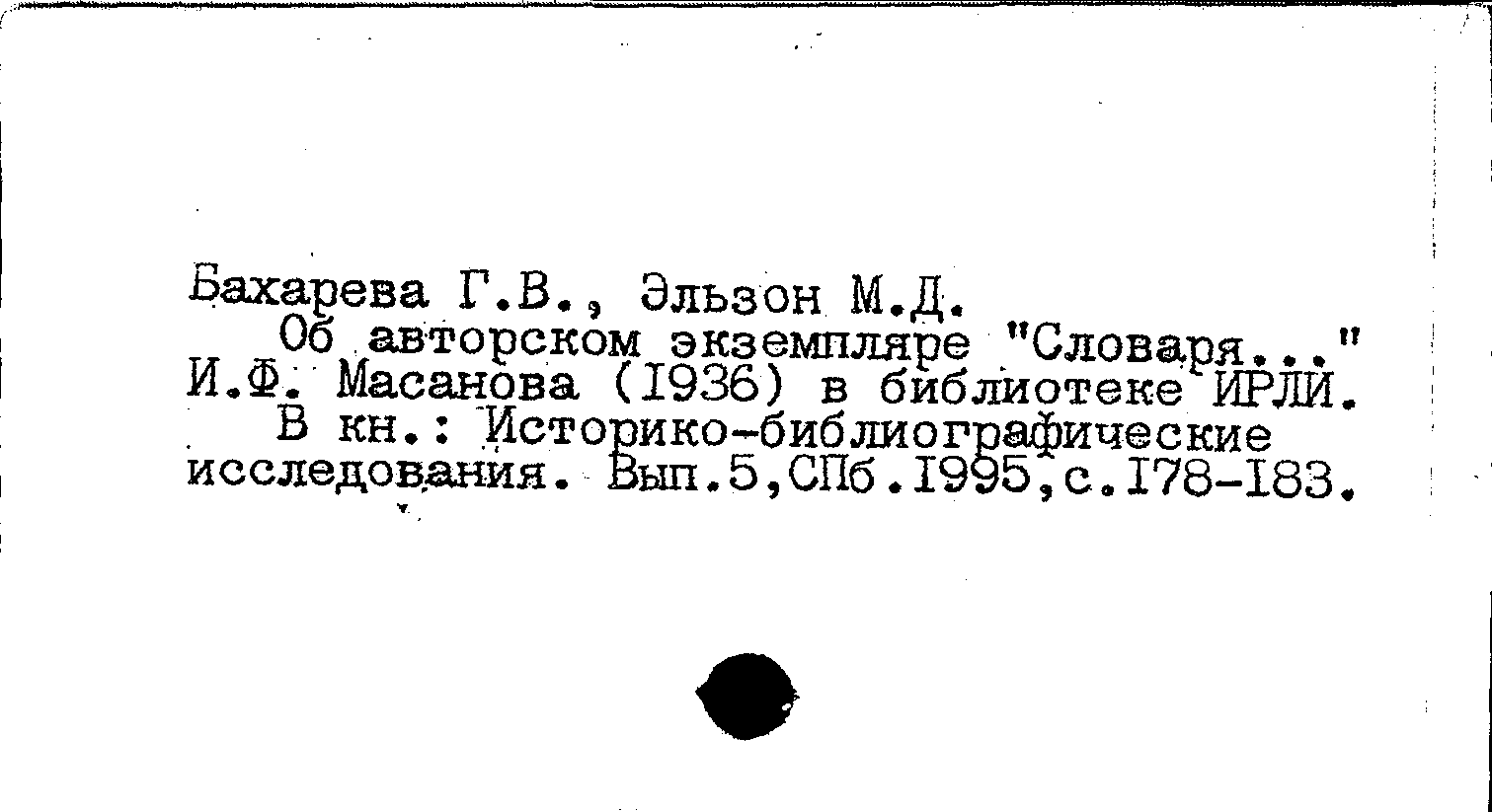 Книга (аналит. описание): Об авторском экземпляре "Словаря..." И. Ф. Масанова (1936) в библиотеке ИРЛИ