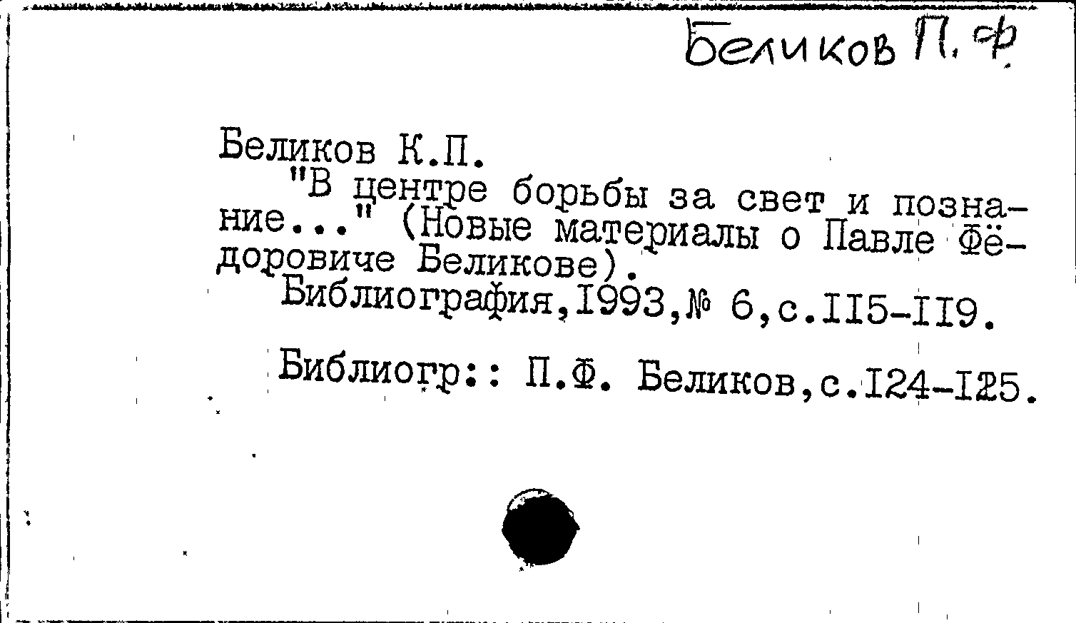 Библиотечные деятели, библиографы и книговеды \ в СССР \ Personalia \ Беликов, Павел Федорович (1911 - 1982) (2)