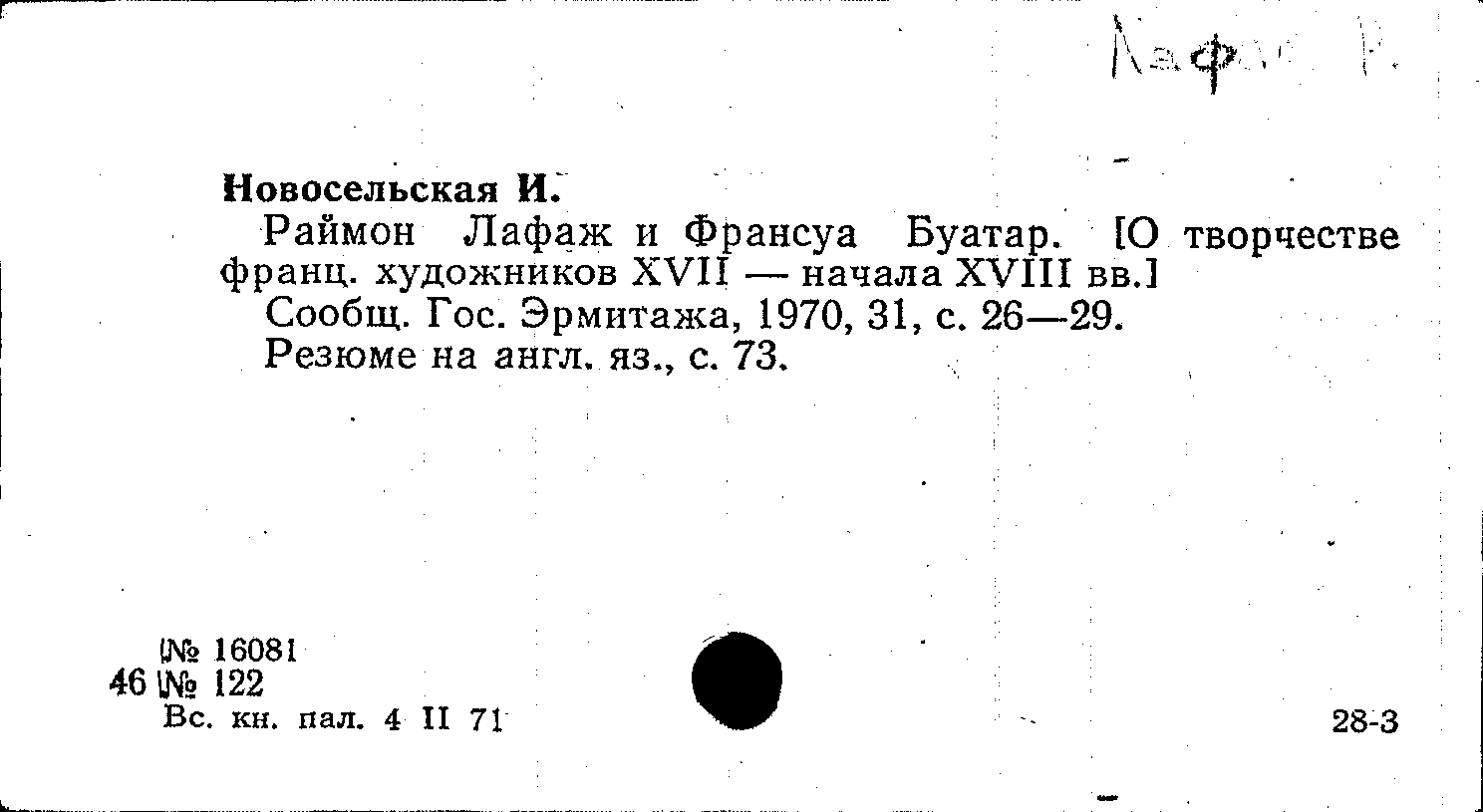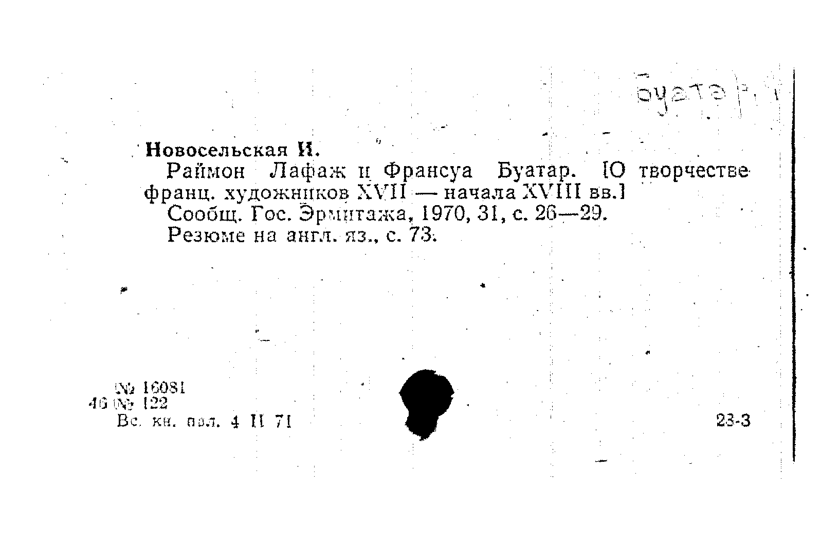 Книга (аналит. описание): Раймон Лафаж и Франсуа Буатар. [О творчестве франц. художников XVII - начала XVIII вв.]