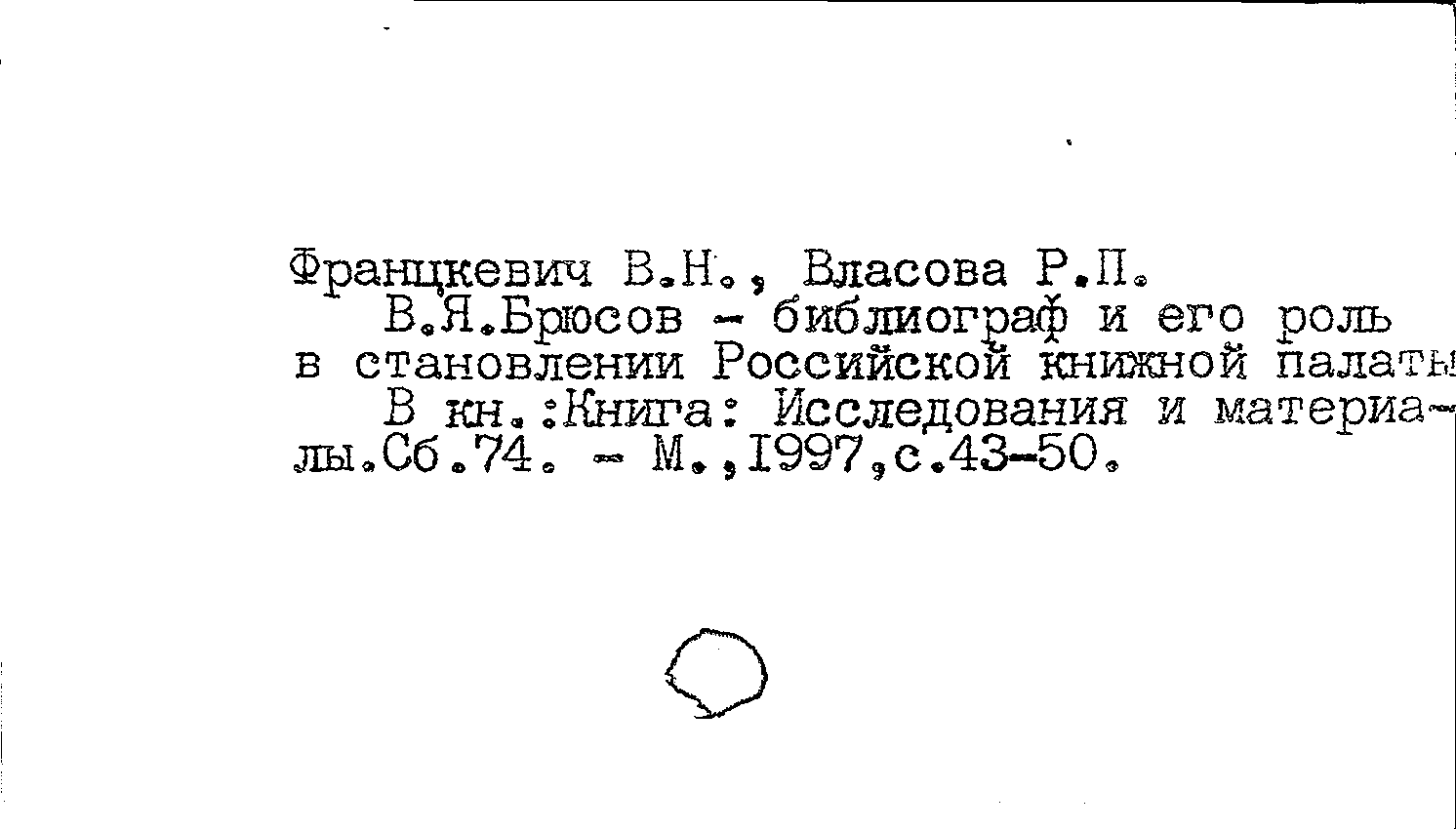В. Я. Брюсов - библиограф и его роль в становлении Российской книжной палаты