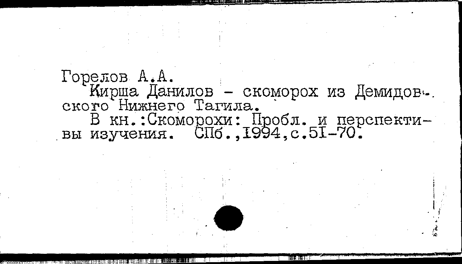 Книга (аналит. описание): Кирша Данилов - скоморох из Демидовского Нижнего Тагила