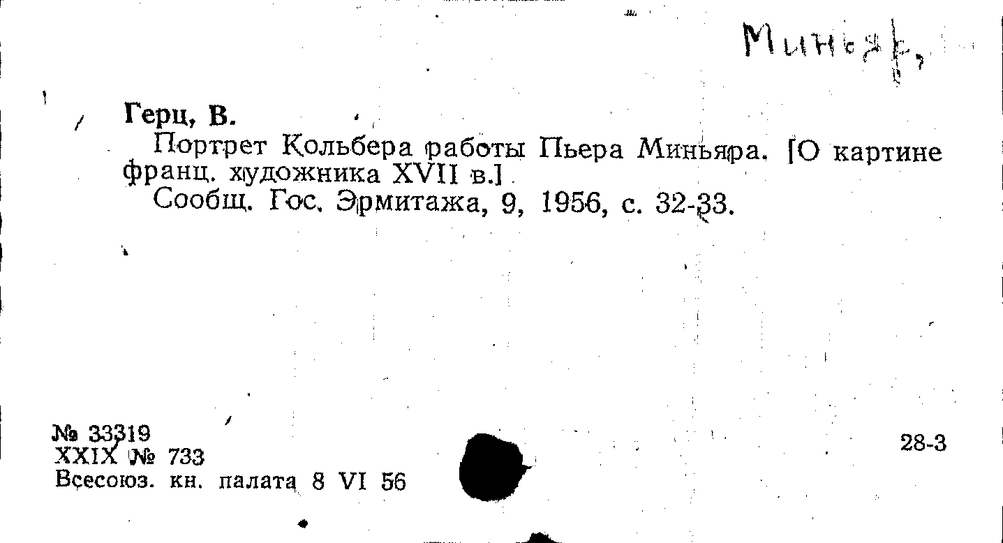 Книга (аналит. описание): Портрет Кольбера работы Пьера Миньяра. [О картине франц. художника XVII в.]