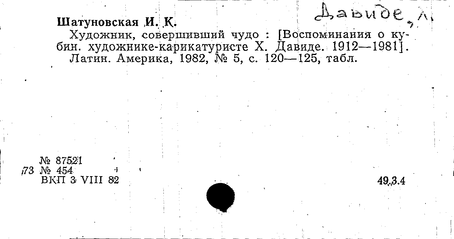 Книга (аналит. описание): Художник, совершивший чудо: [Воспоминания о кубин. художнике-карикатуристе Х. Давиде. 1912-1981.]