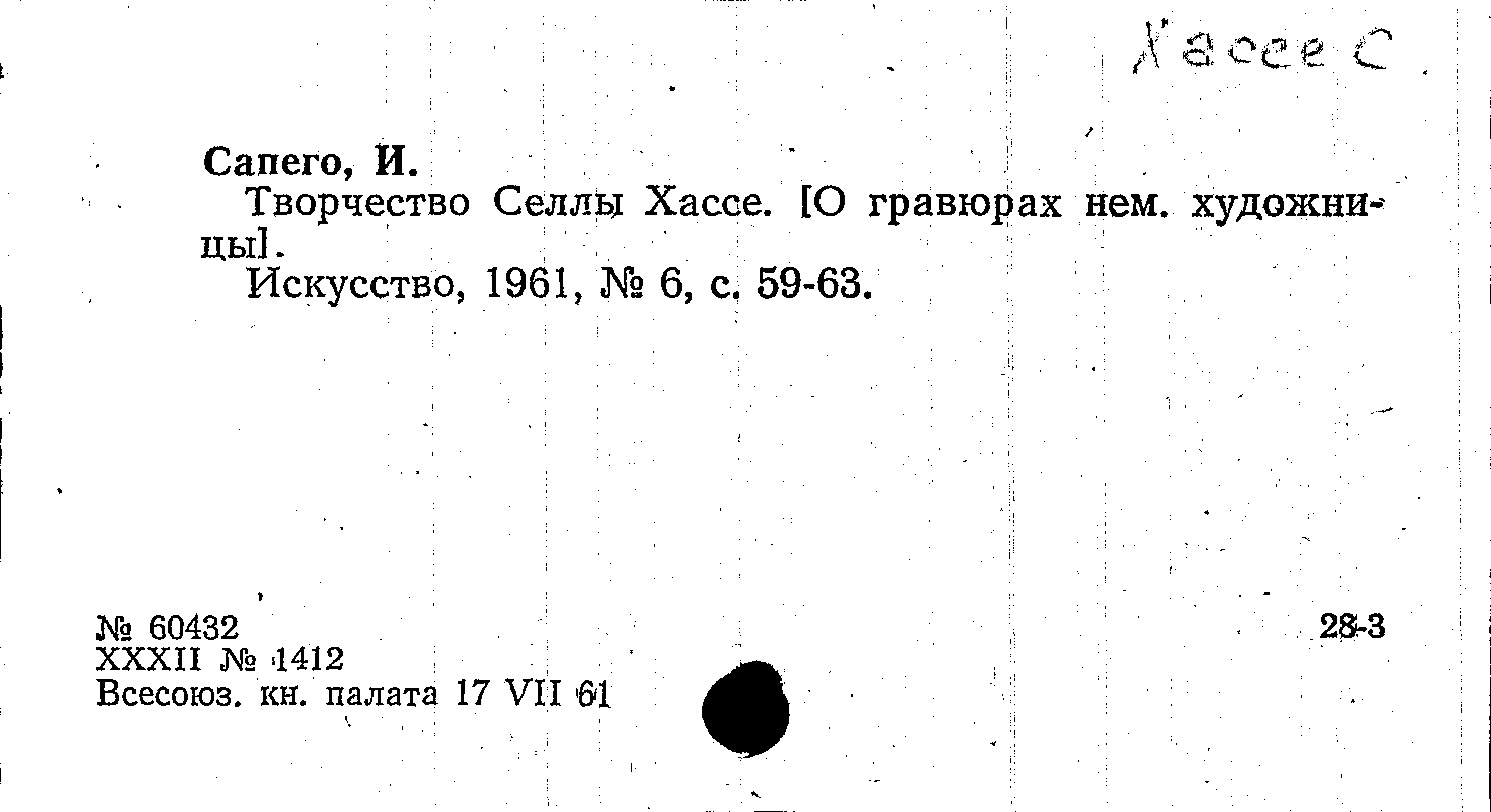 Книга (аналит. описание): Творчество Селлы Хассе. [О гравюрах нем. художницы]