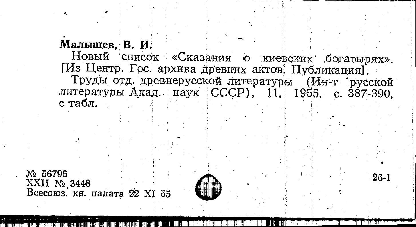Книга (аналит. описание): Новый список "Сказания о киевских богатырях"
