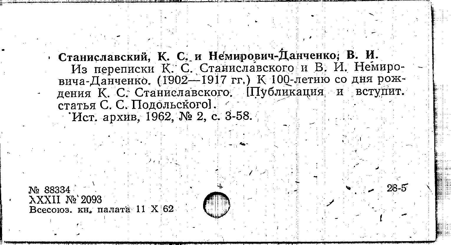 Из переписки К. С. Станиславского и В. И. Немировича-Данченко. (1902-1917 гг.)