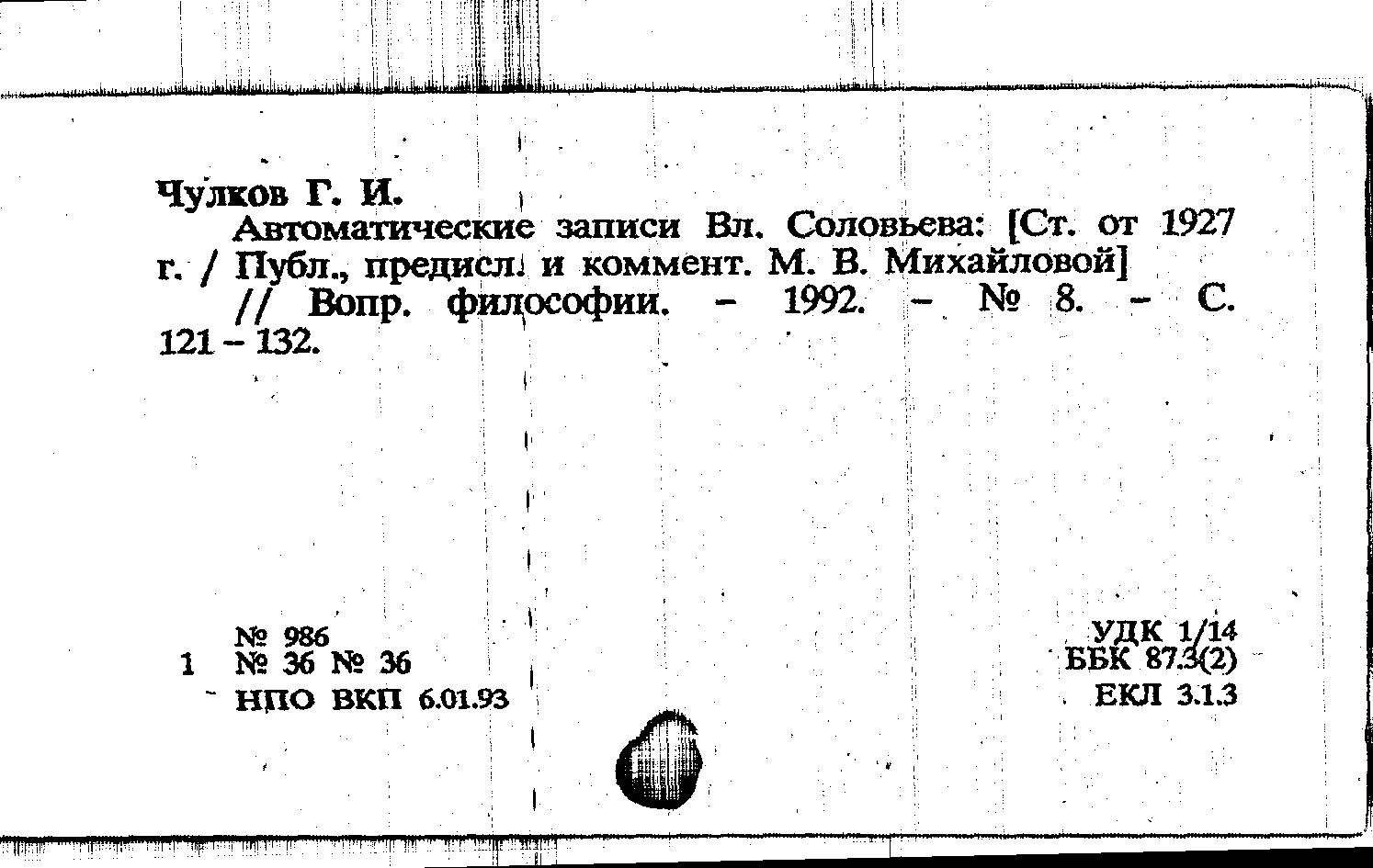 Книга (аналит. описание): Автоматические записи Вл. Соловьева
