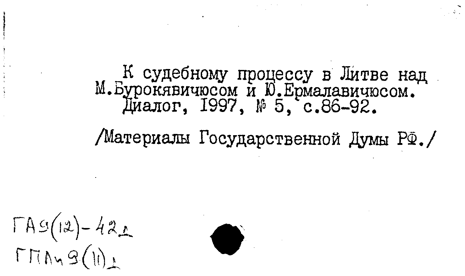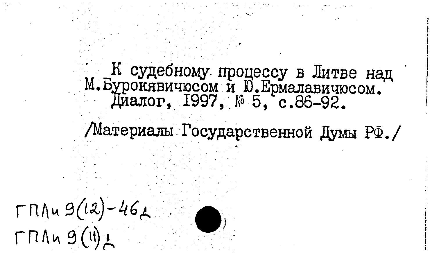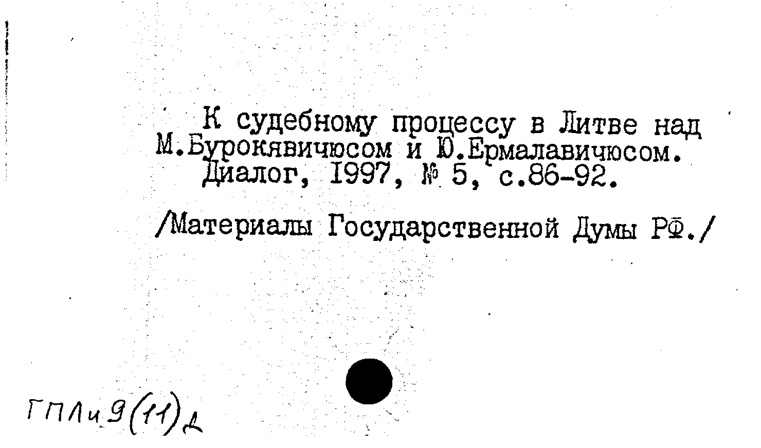 К судебному процессу в Литве над М. Бурокявичюсом и Ю. Ермалавичюсом. Диалог, N 5 1997: N 5 1997