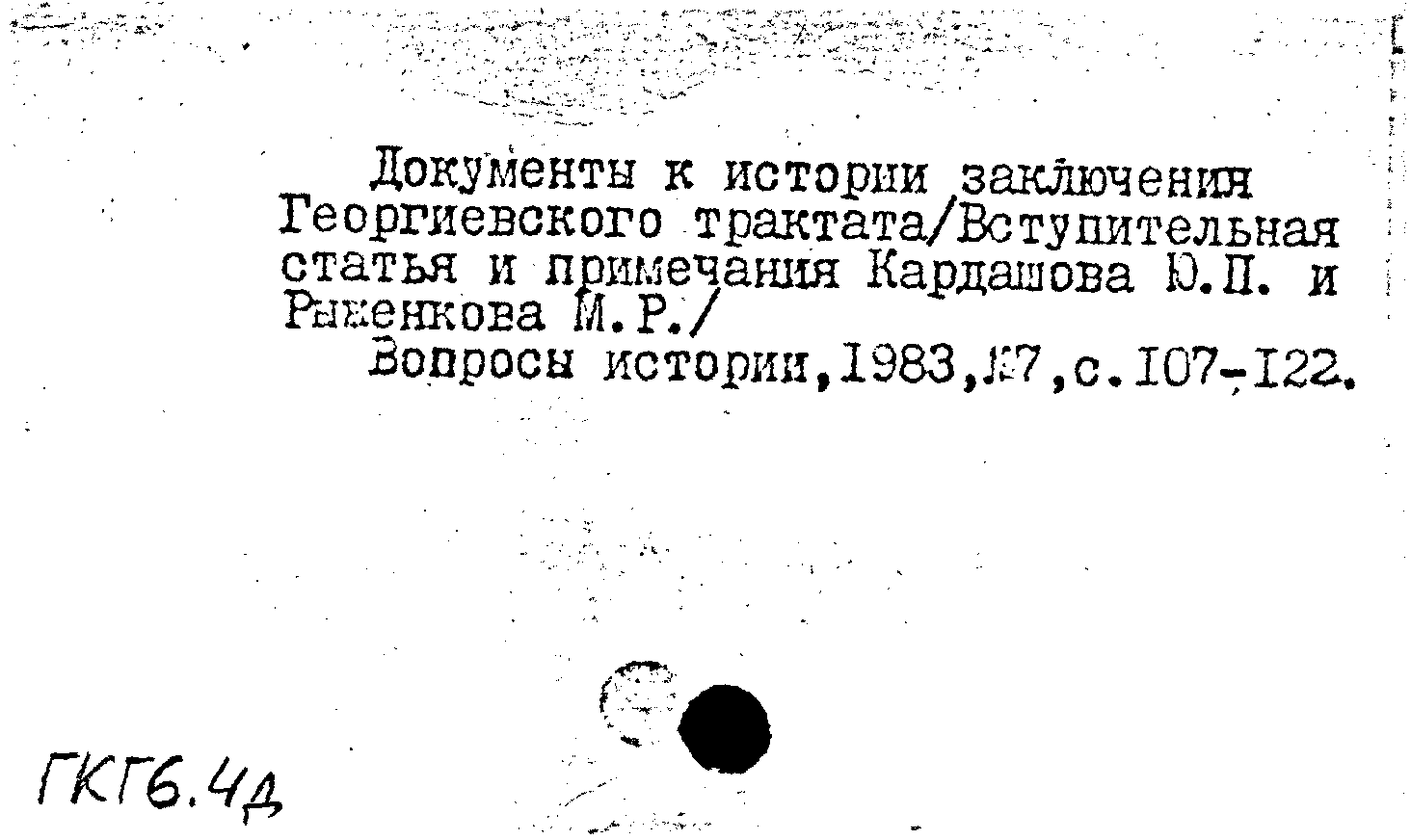 Статья: Документы к истории заключении Георгиевского трактата. Вопросы истории, № 7 /1983: № 7 /1983