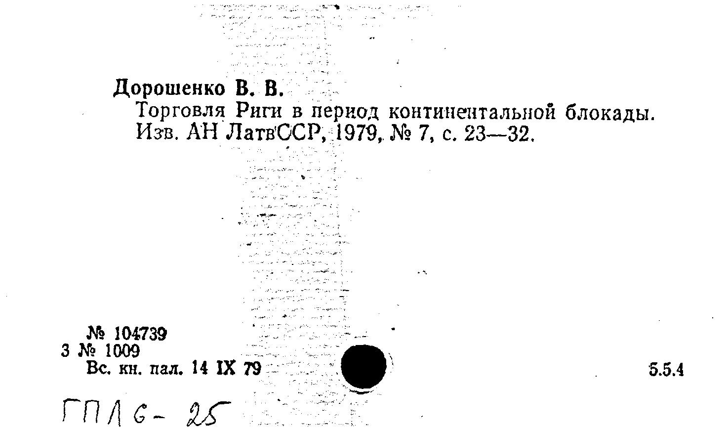 Торговля Риги в период континентальной блокады. Известия Академии наук Латвийской ССР, N 7 1979: N 7 1979