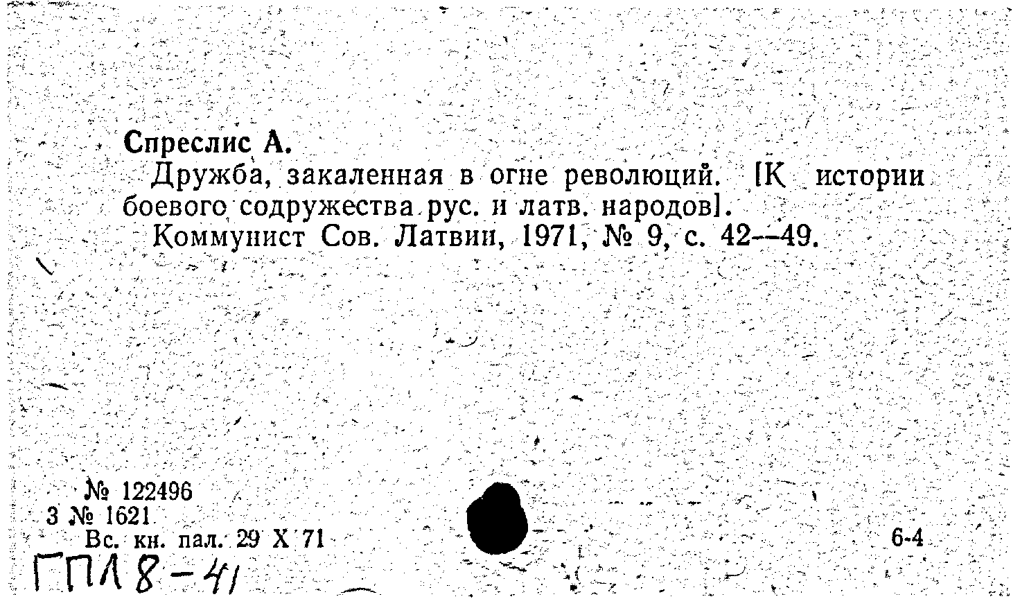 Статья: Дружба, закаленная в огне революций. Коммунист Советской Латвии, N 9 1971: N 9 1971