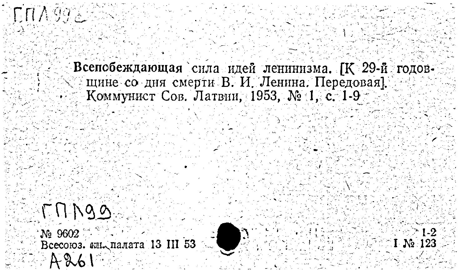 Статья: Всепобеждающая сила идей ленинизма. Коммунист Советской Латвии, N 1 1953: N 1 1953