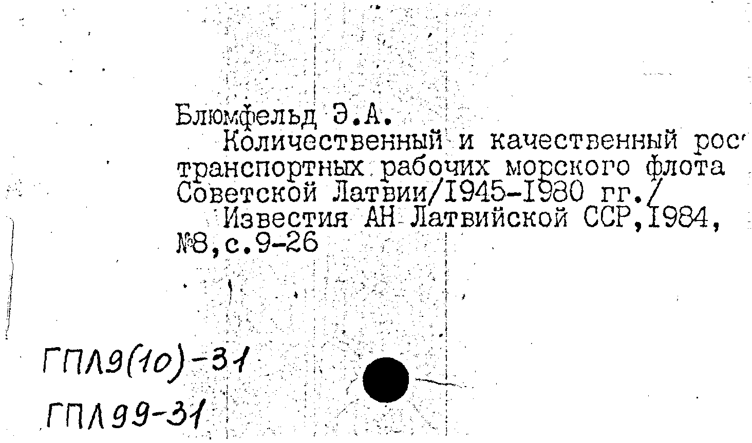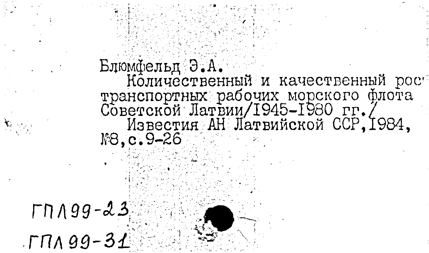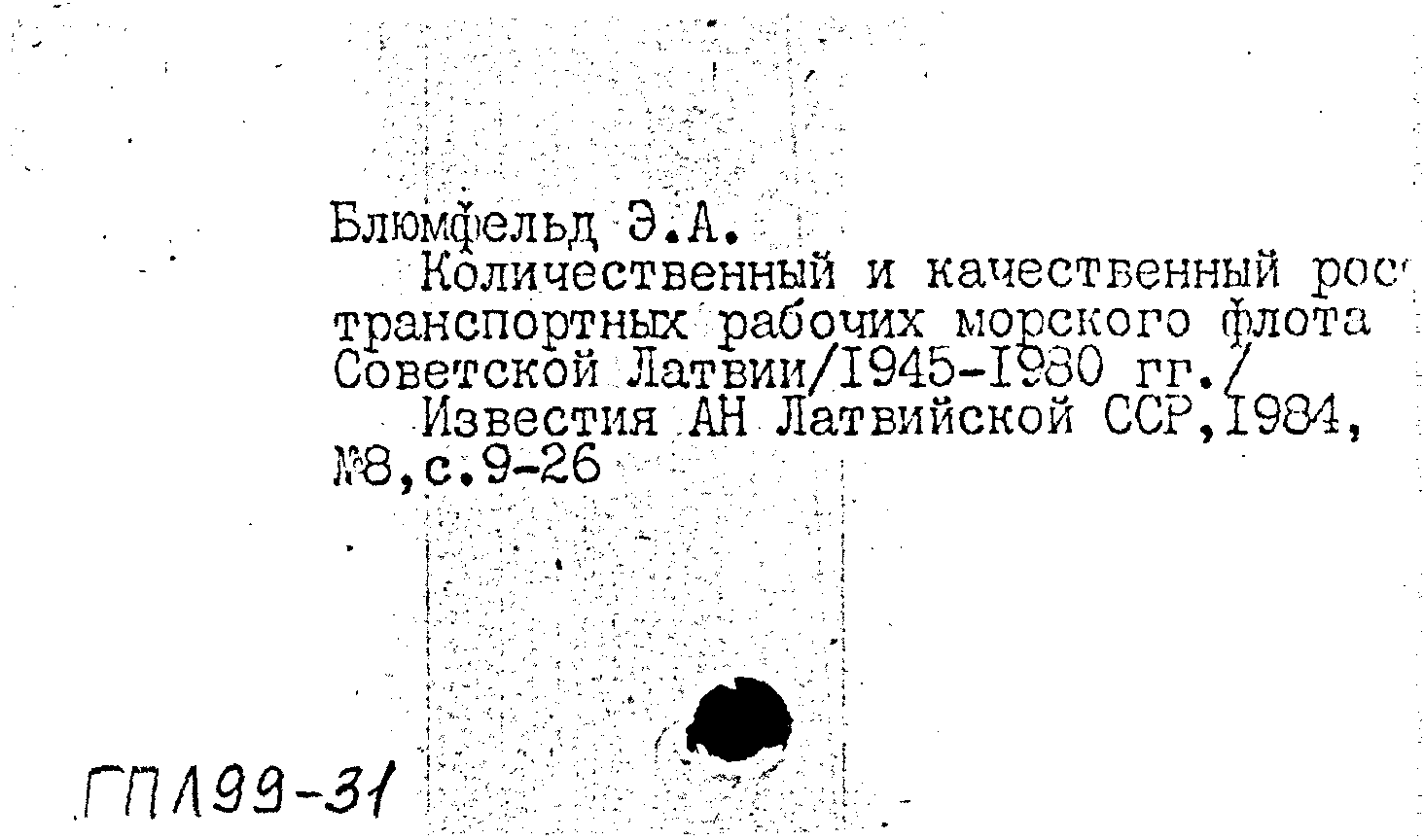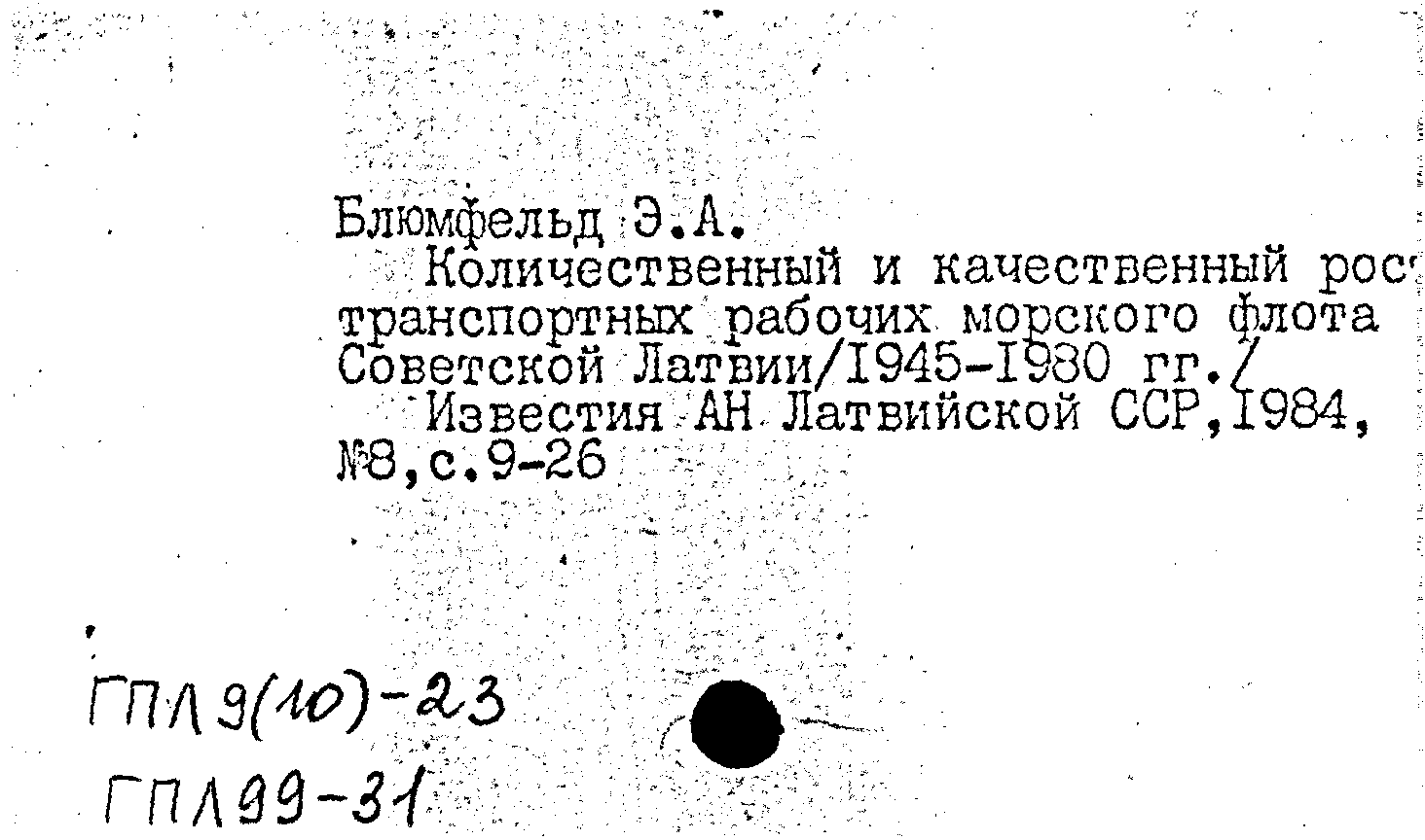 Количественный и качественный рост транспортных рабочих морского флота Советской Латвии (1945-1980 гг.). Известия Академии наук Латвийской ССР, N 8 1984: N 8 1984