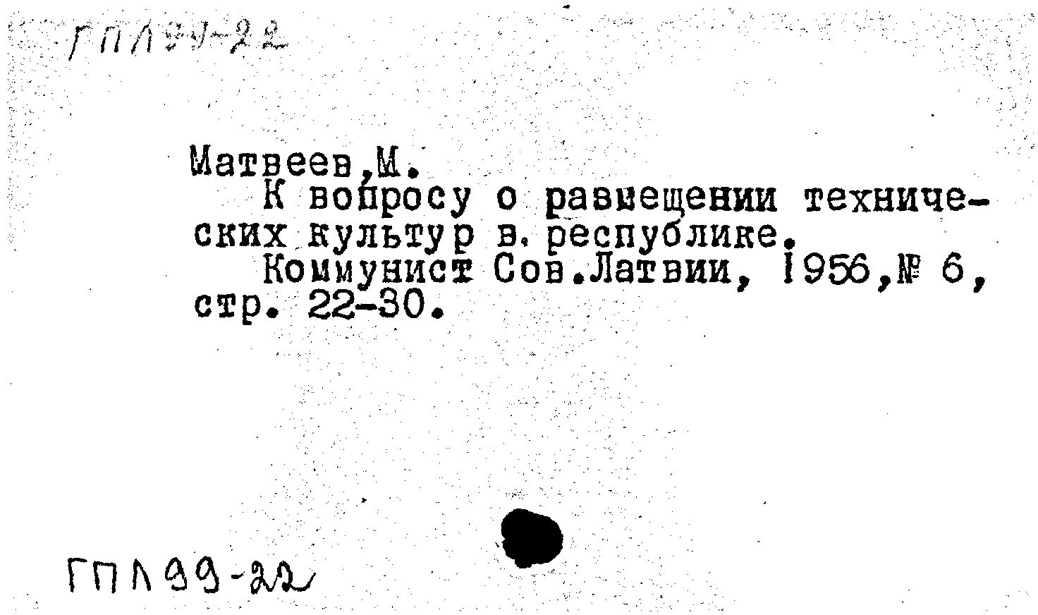 Статья: К вопросу о размещении технических культур в республике. Коммунист Советской Латвии, N 6 1956: N 6 1956