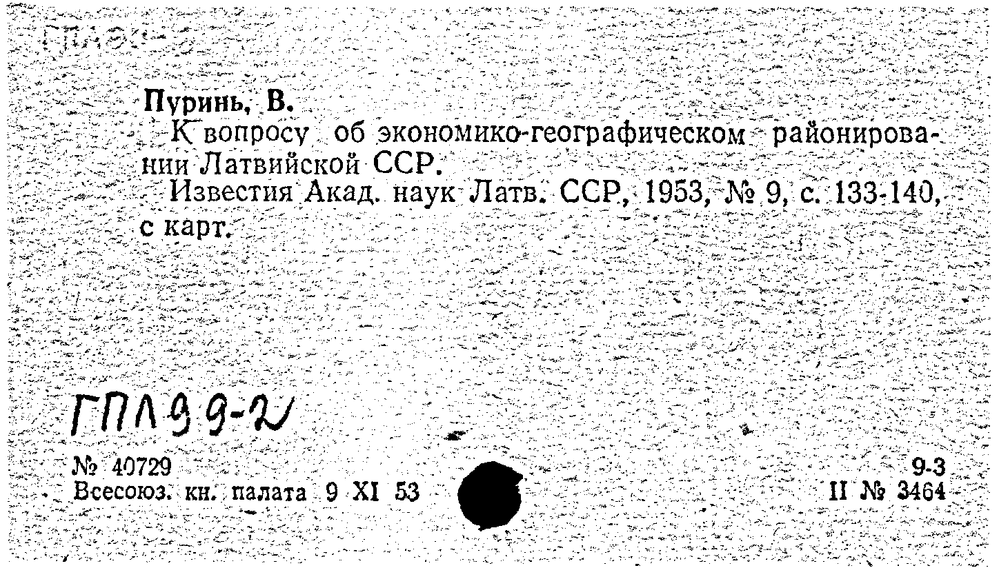 К вопросу об экономико-географическом районировании Латвийской ССР. Известия Академии наук Латвийской ССР, N 9 1953: N 9 1953