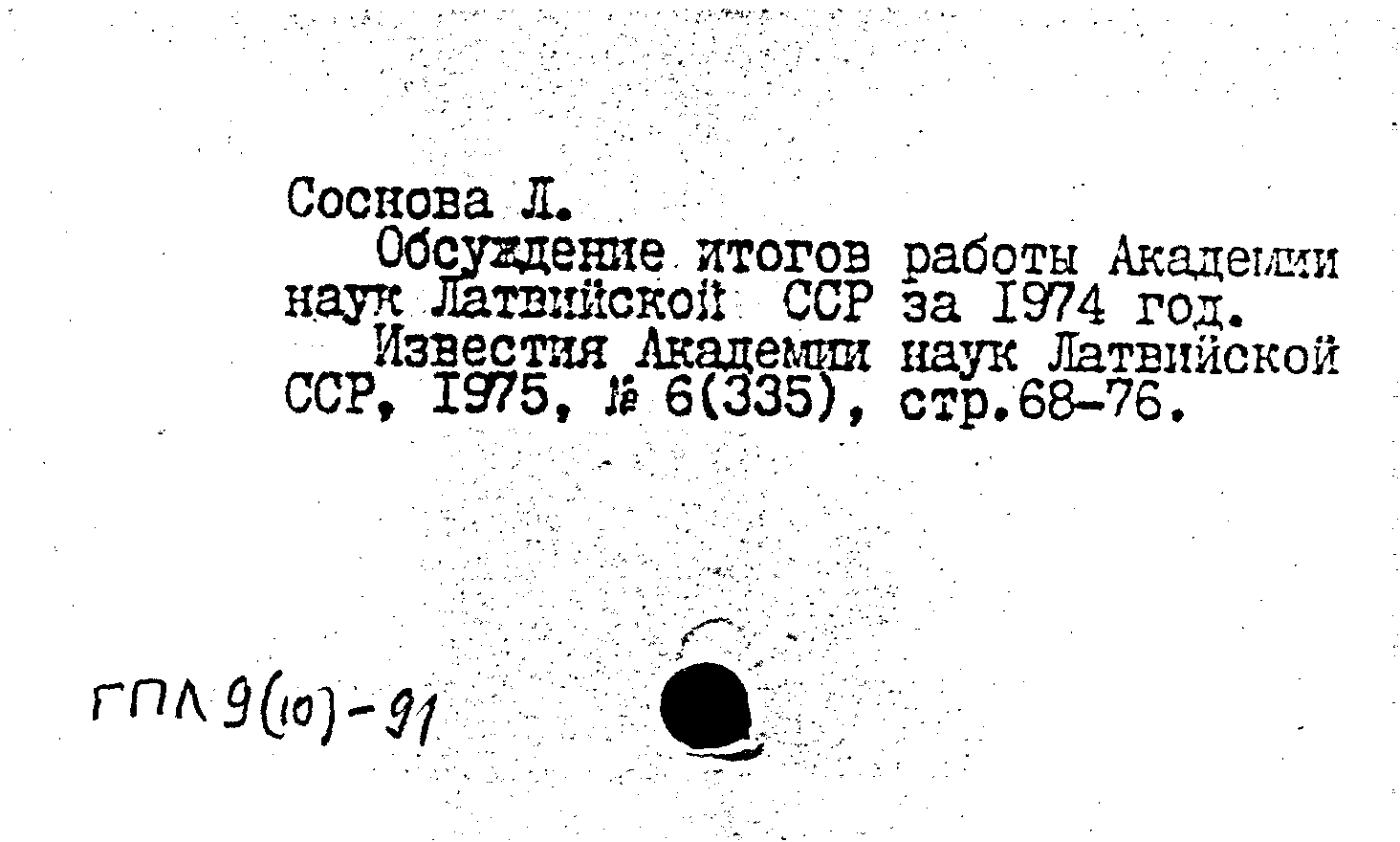 Обсуждение итогов работы Академии наук Латвийской ССР за 1974 год. Известия Академии наук Латвийской ССР, N 6 1975: N 6 1975