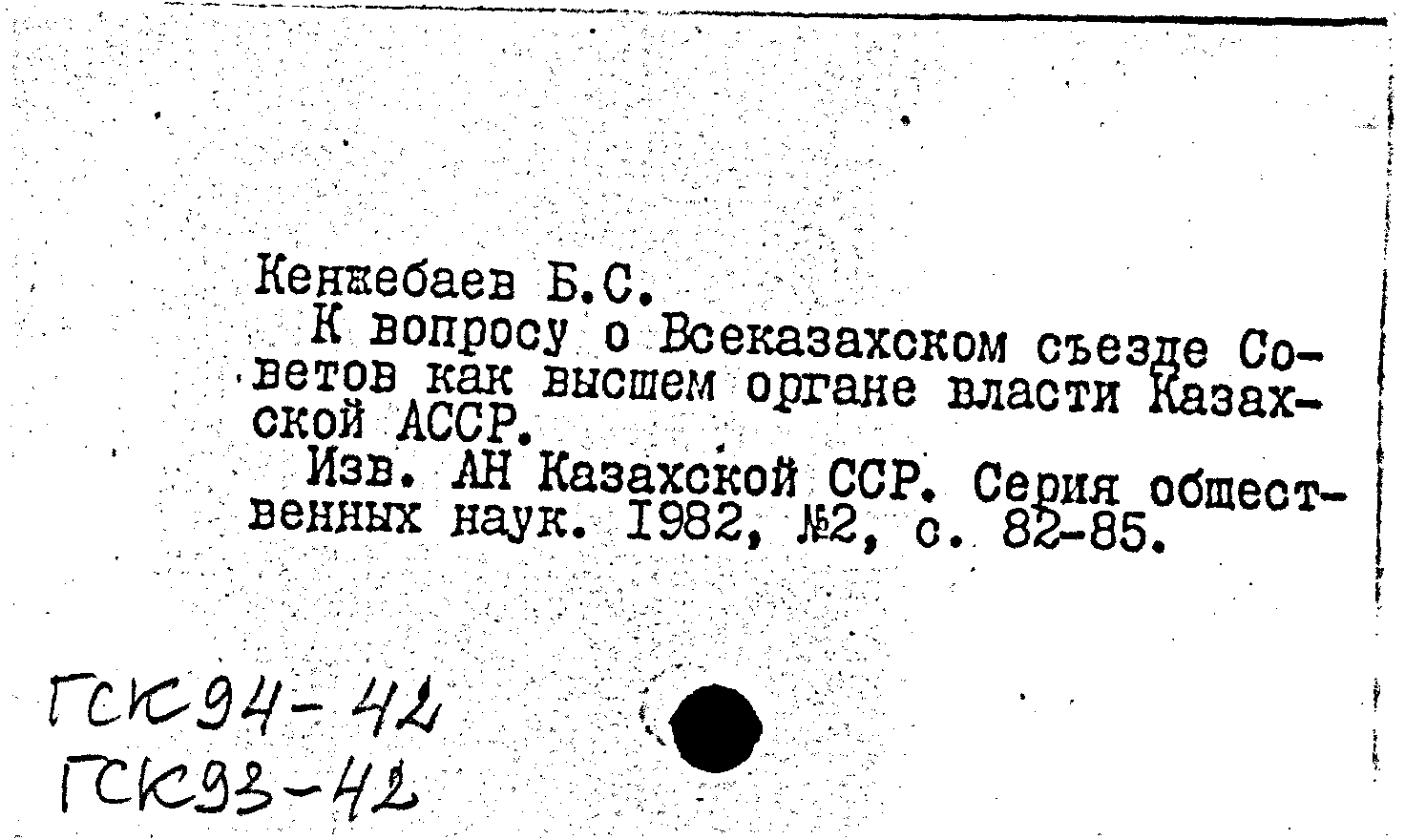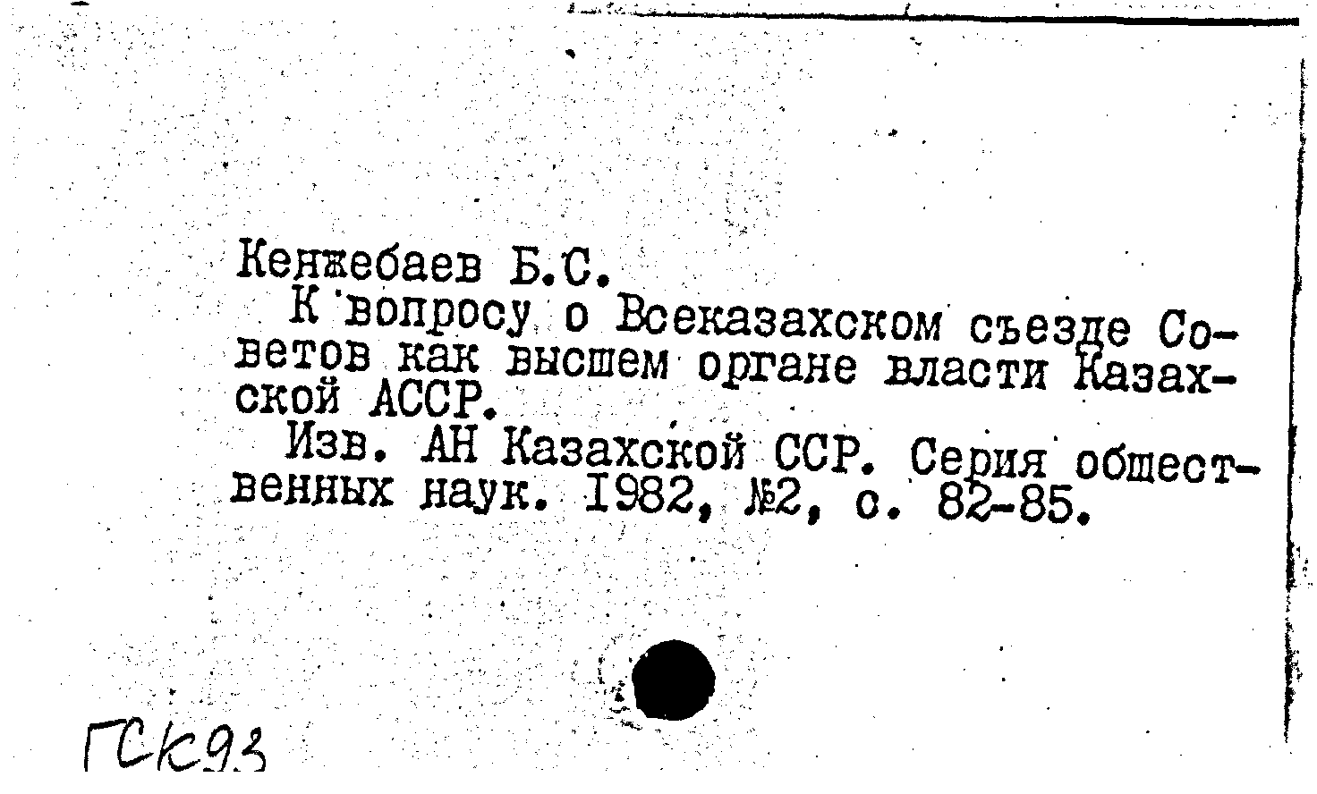 К вопросу о Всеказахском съезде Советов как высшем органе власти Казахской АССР. Известия Академии наук Казахской ССР. Сер.: Общественные науки, N 2 1982: N 2 1982